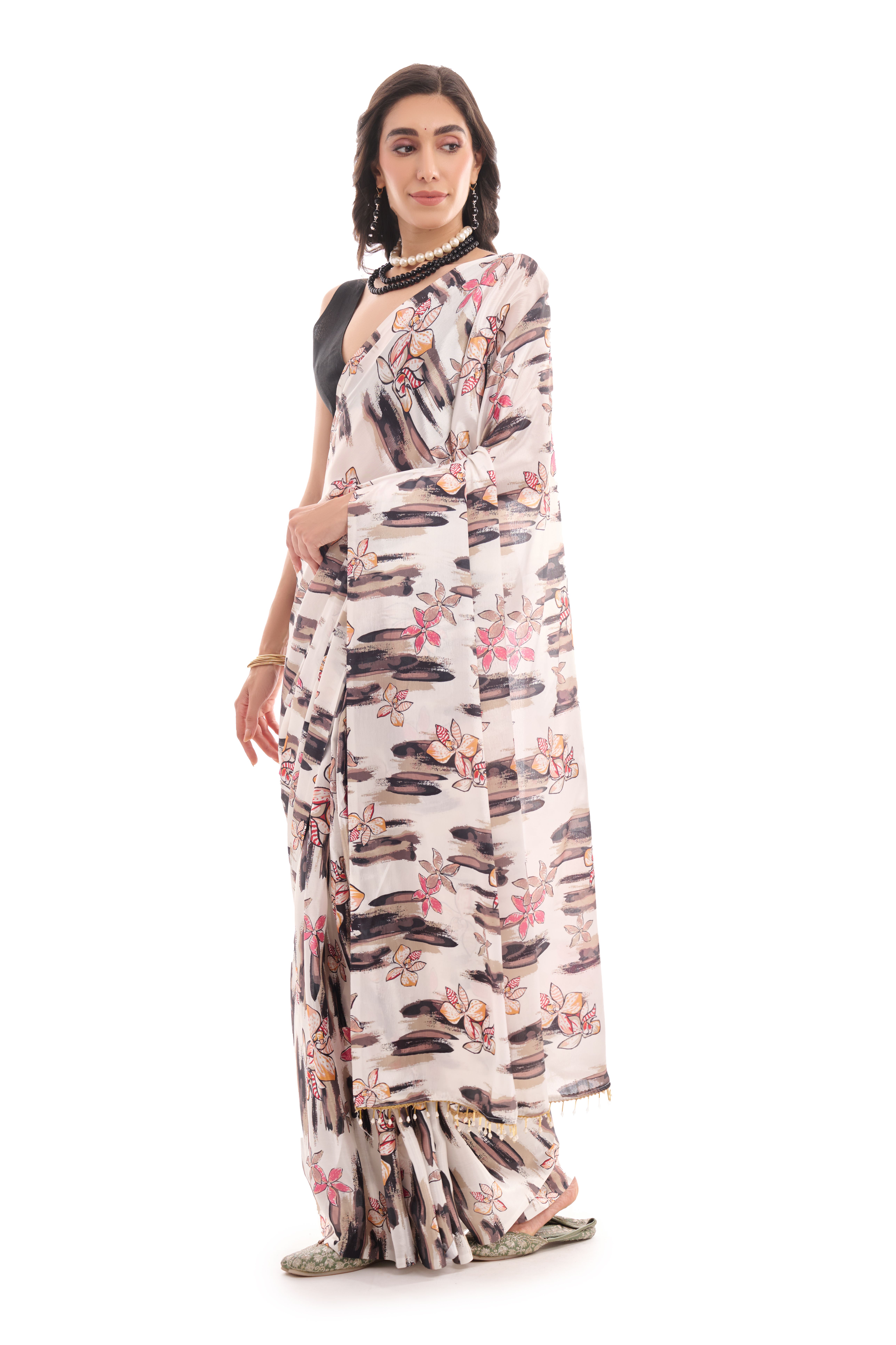 White Color Chinon Fabric Ready To Wear Saree For Elegant Bollywood Style