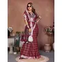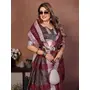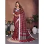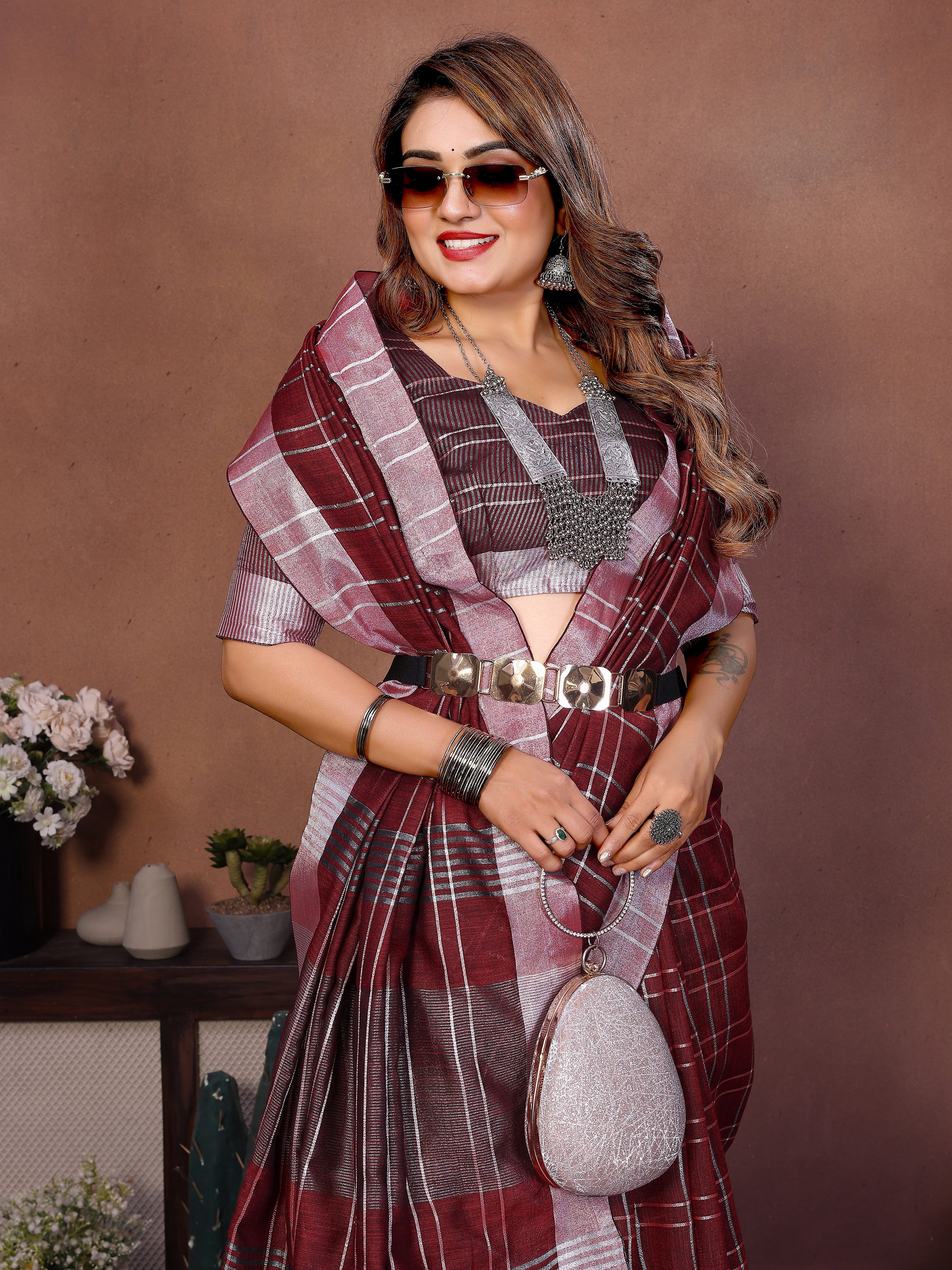 Wine Color Linen Cotton Fabric Woven Checks Designer Trendy Ethnic Saree