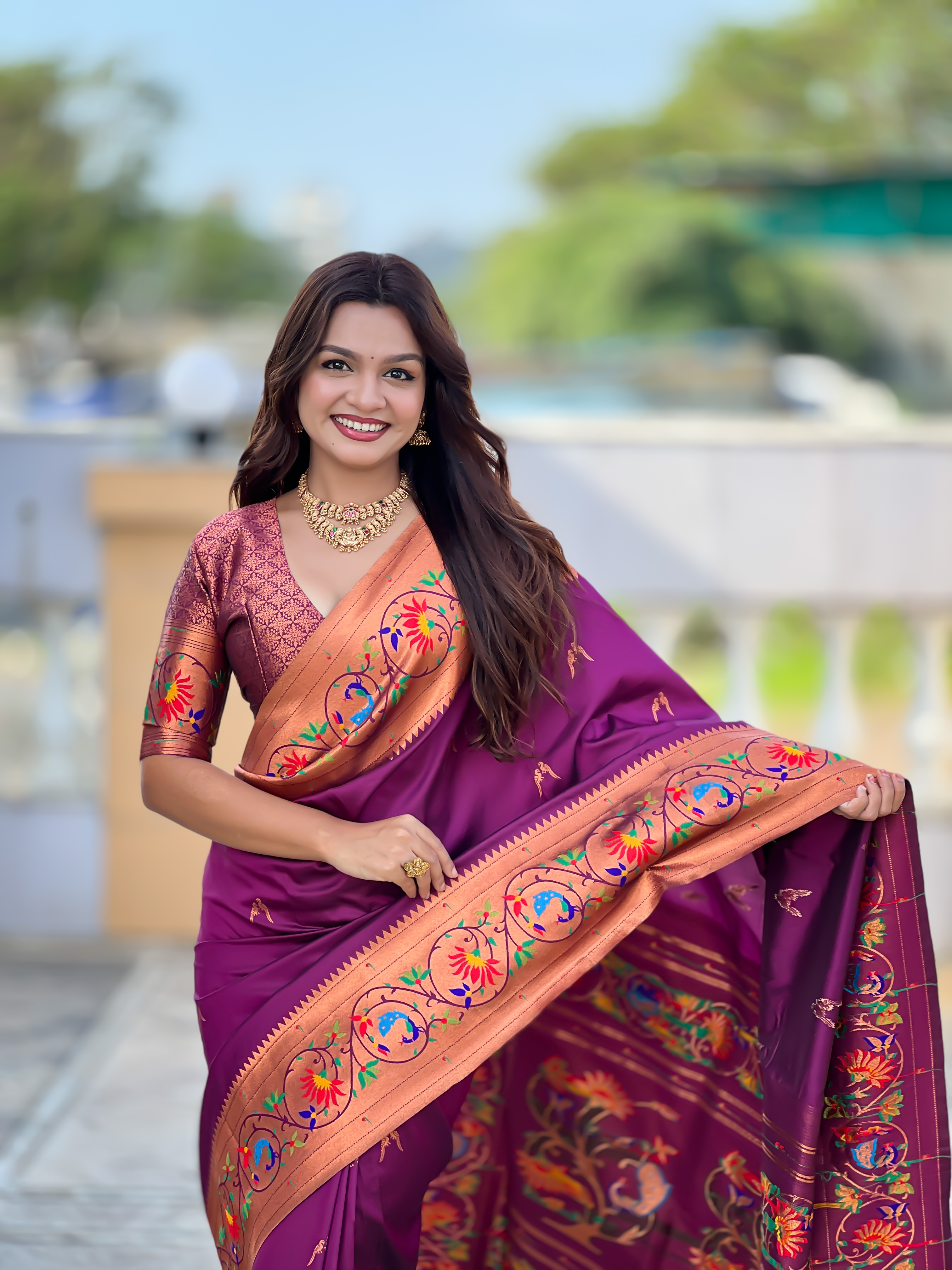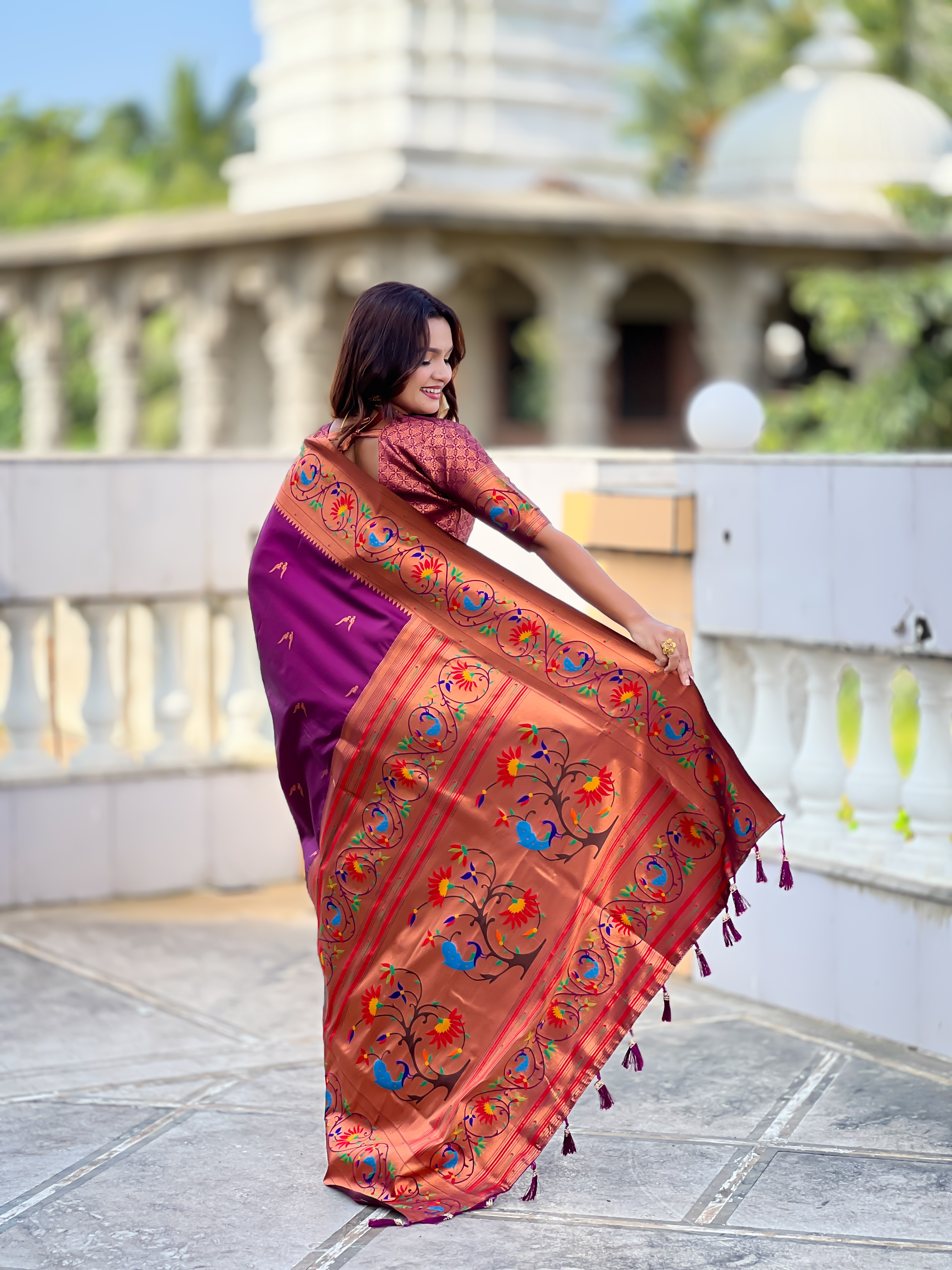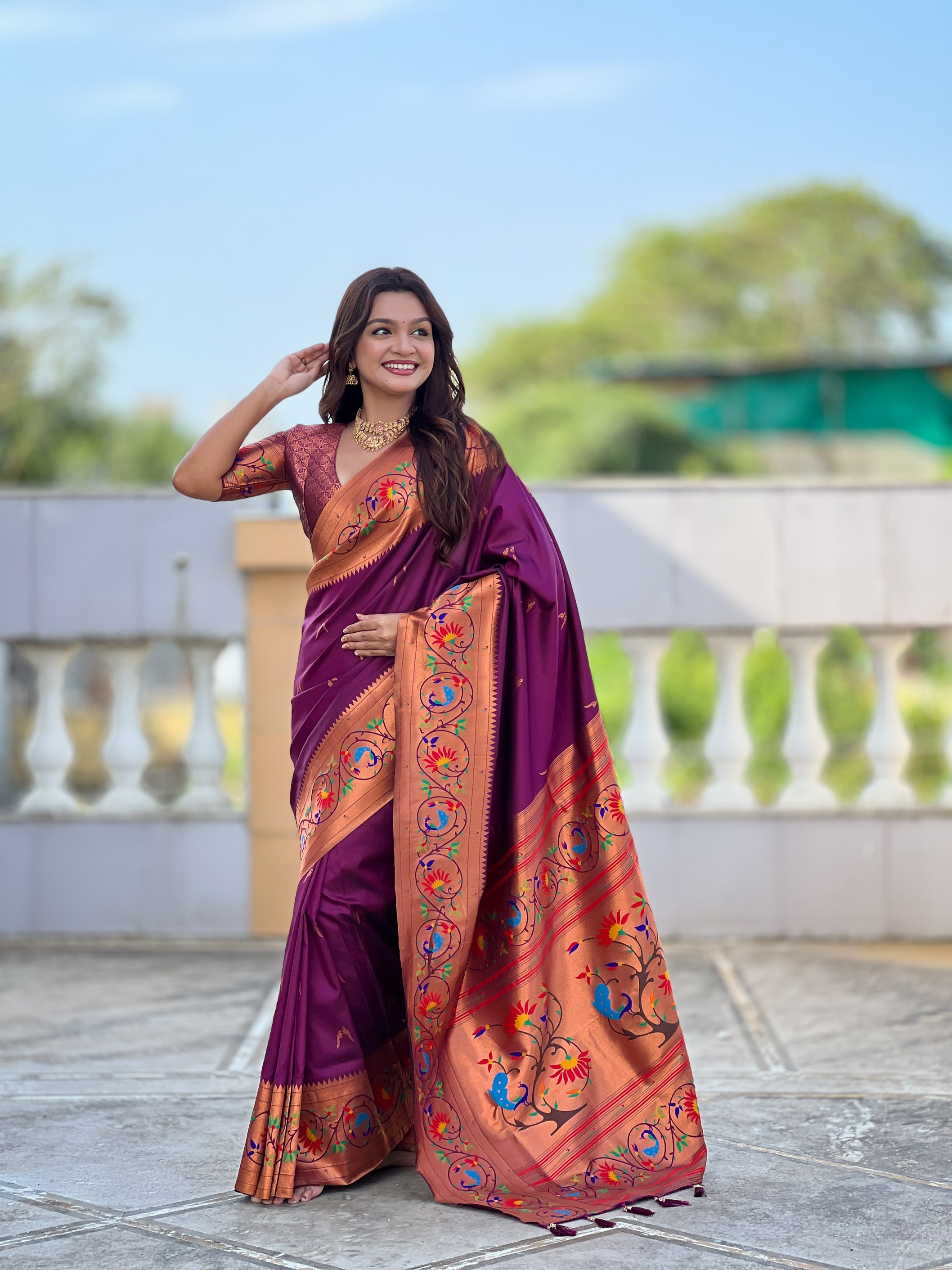 Wine Color Paithani Silk Fabric Woven Meenakari Jacquard Designer Graceful Wedding Saree
