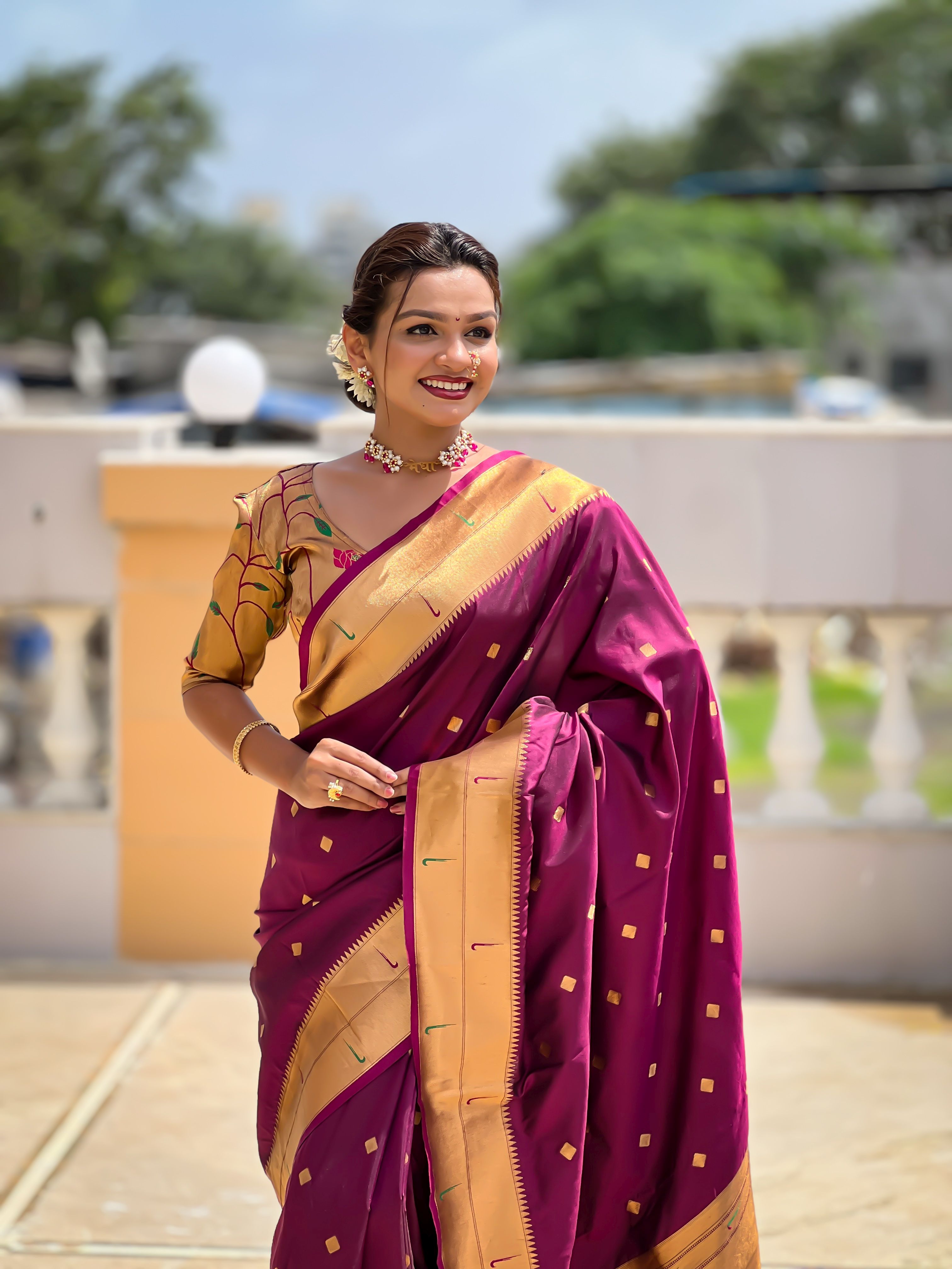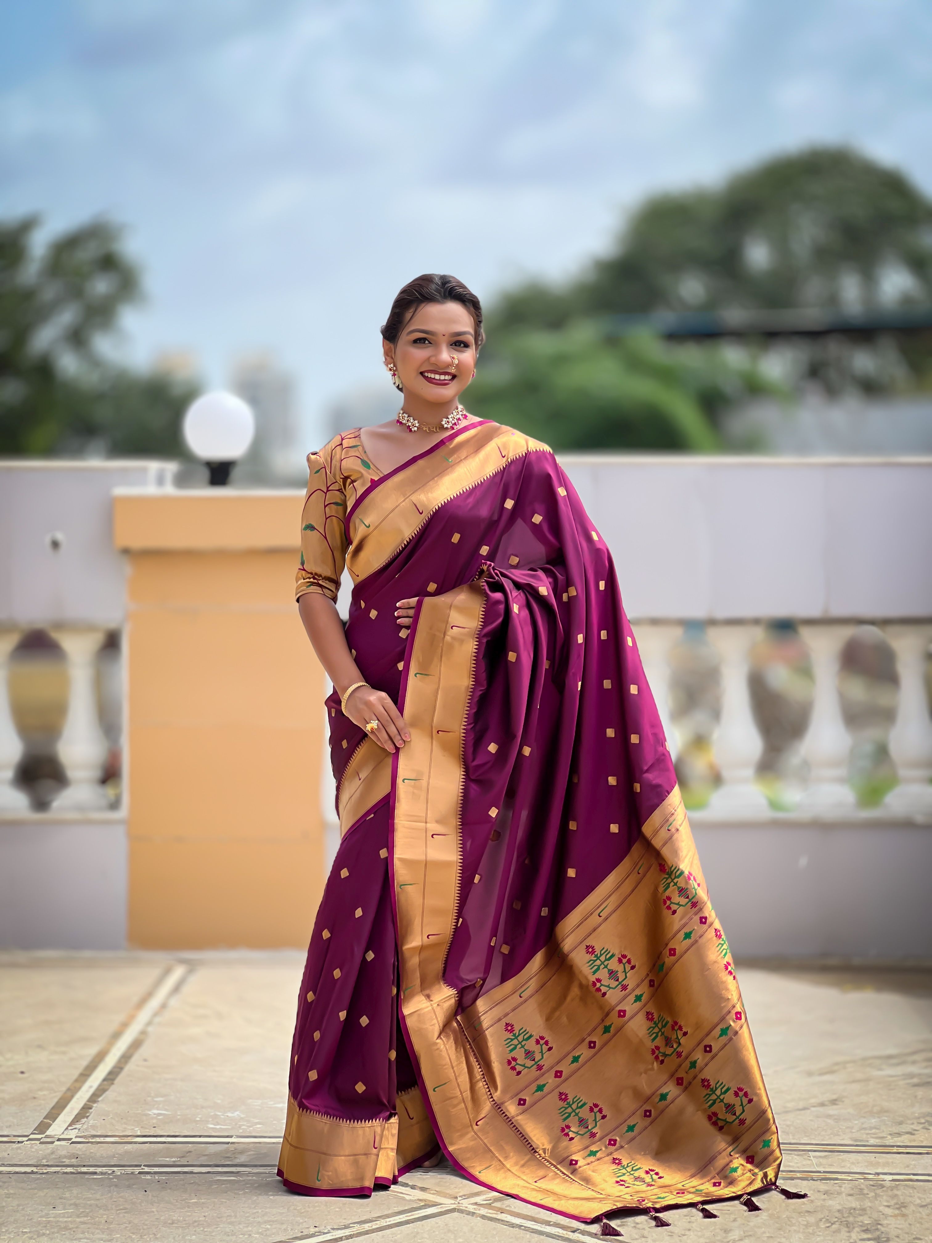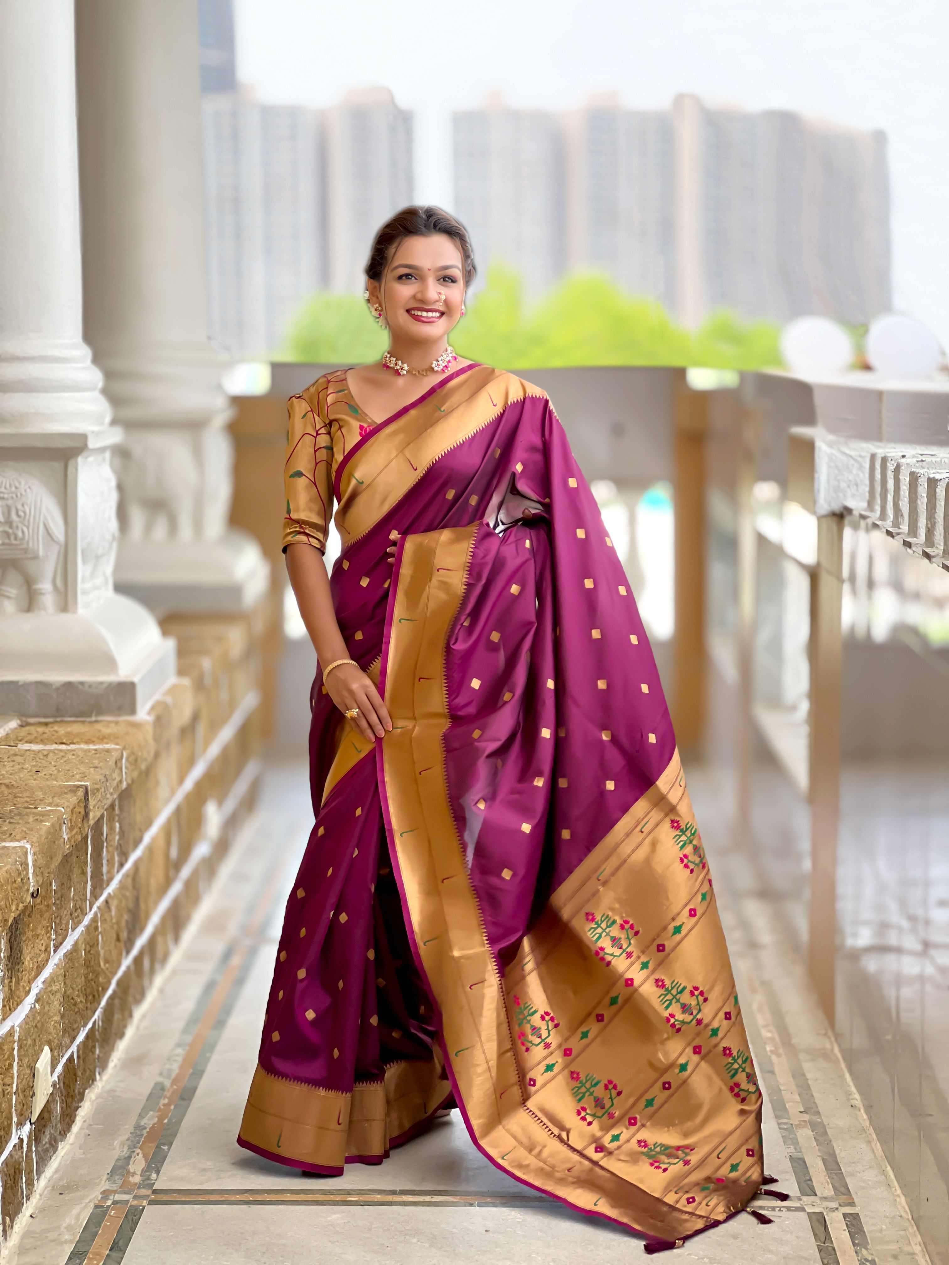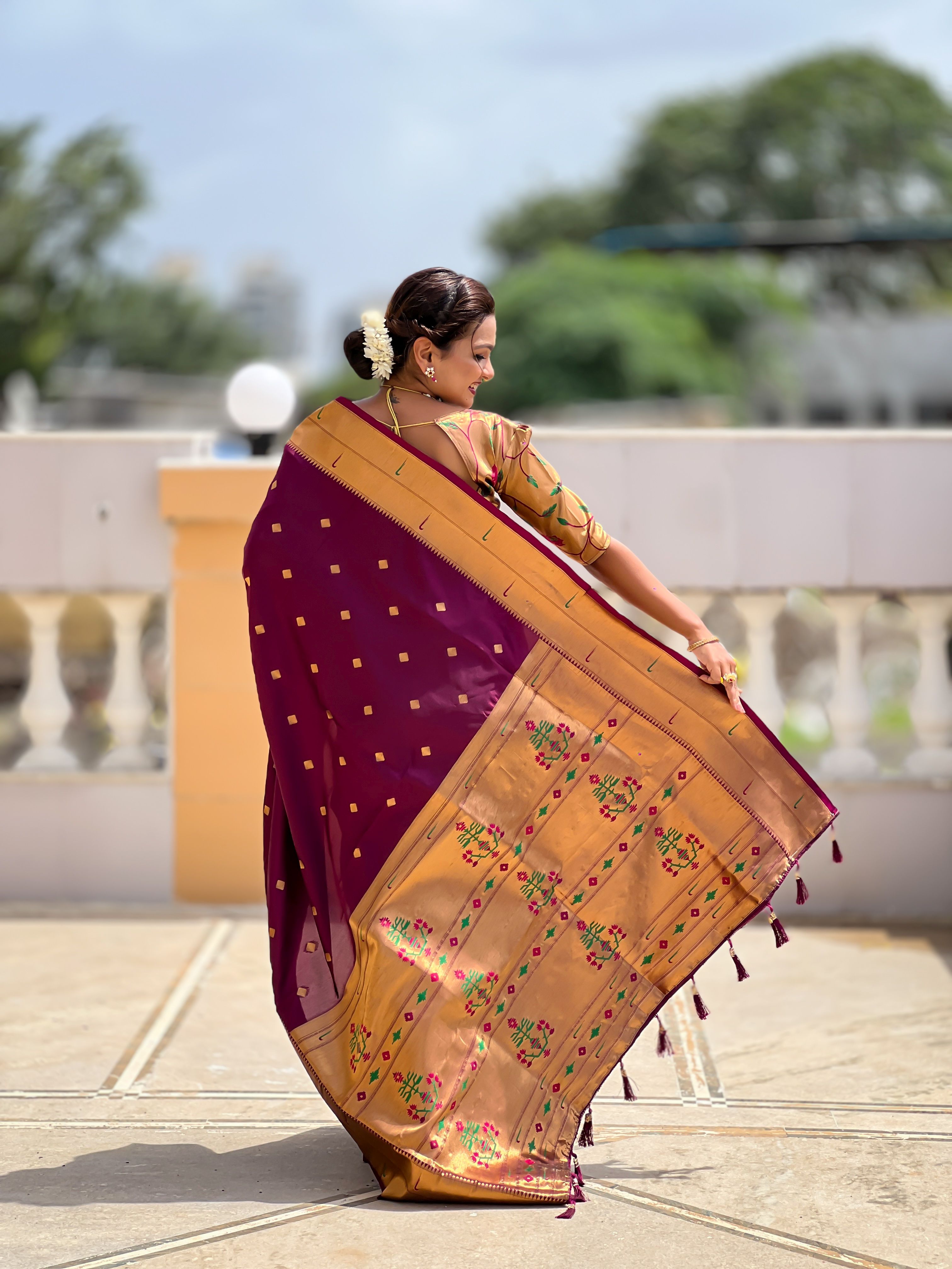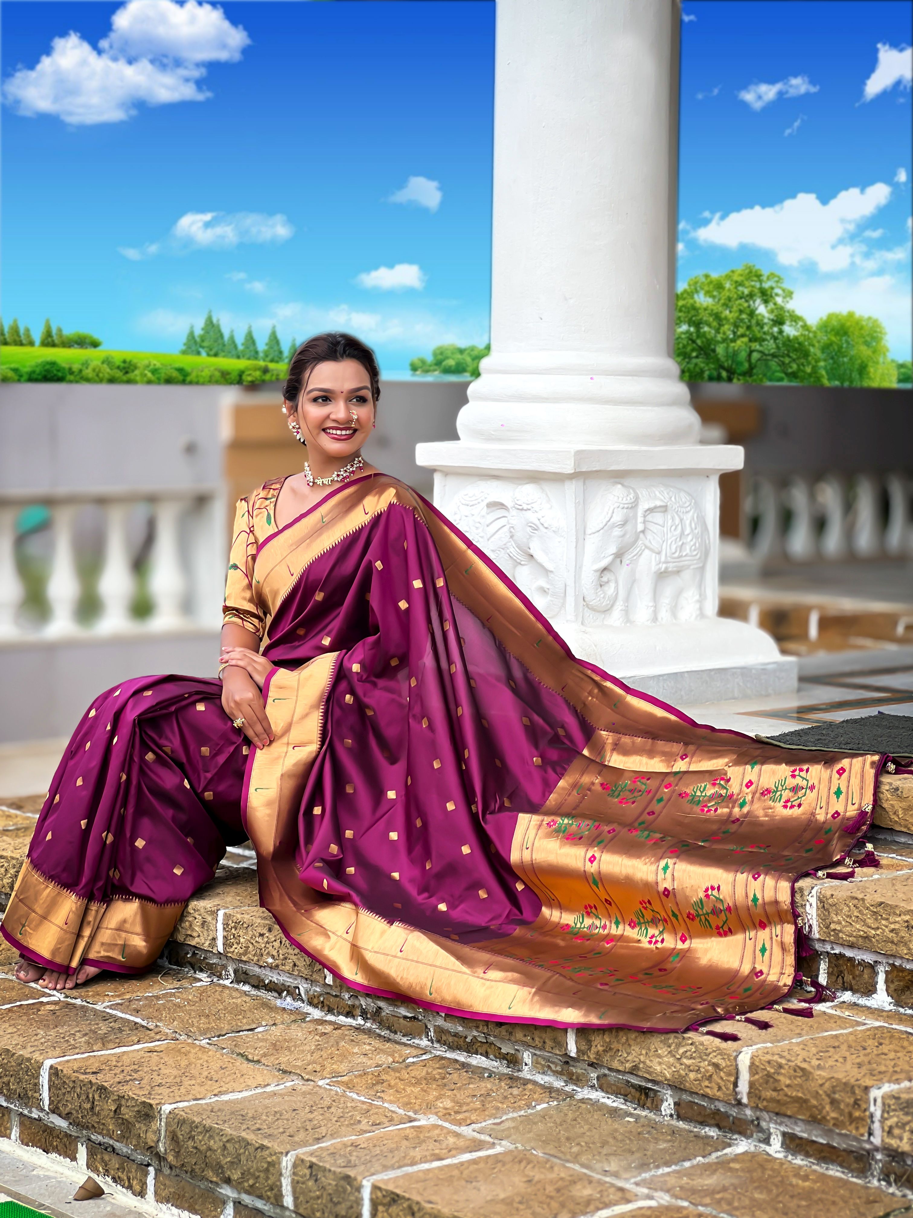 Wine Color Paithani Silk Woven Jacquard Jari Designer Ethnic Saree