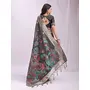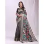 Woven Jacquard Designer Grey Color Linen Cotton Fabric Ceremonial Saree
