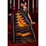 Yellow & Black Color Ikkat Silk Fabric Designer Zig Zag Printed Traditional Party Looks Saree
