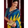 Yellow & Blue Color Ikkat Silk Fabric Designer Zig Zag Printed Traditional Party Looks Saree