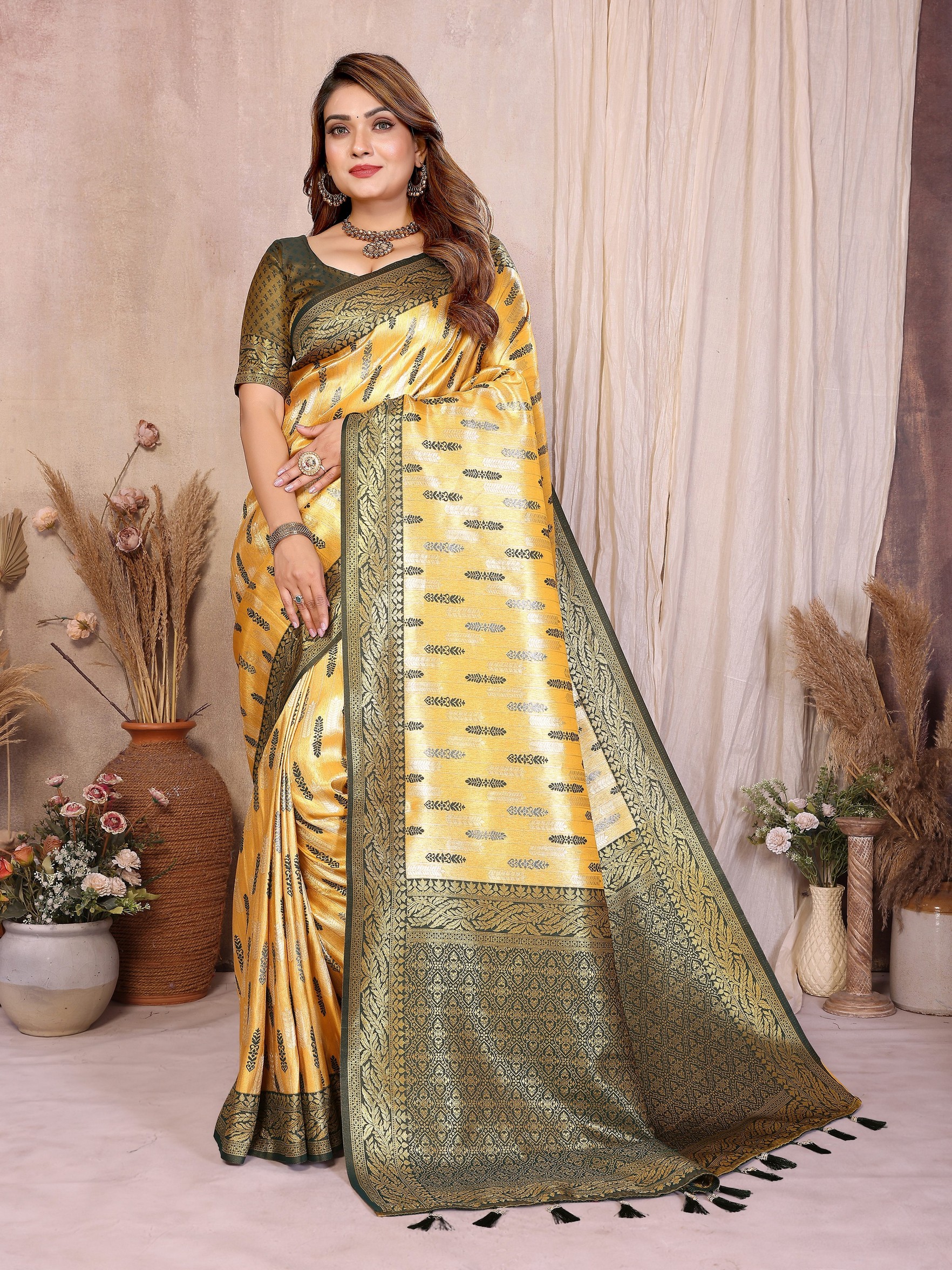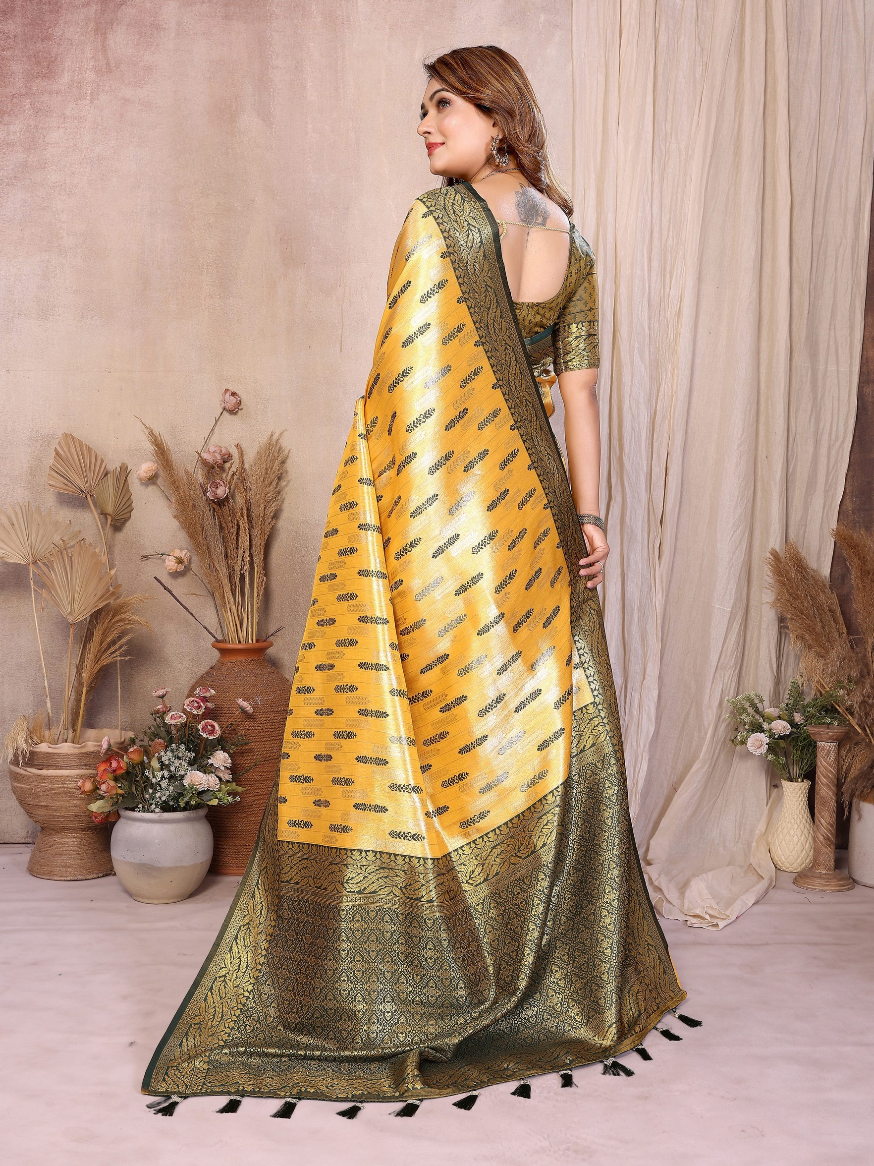 Yellow Color Beautiful Banarasi Tissue Silk Rich Sophisticated Saree