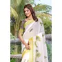 Yellow Color Linen Cotton Fabric Beautiful Festive Special Saree