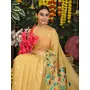 Yellow Color Linen Cotton Fabric Beautiful Woven Designer Partywear Saree