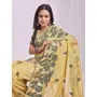 Yellow Color Linen Cotton Fabric Wevon Thread Designer Festive Sophisticated Saree