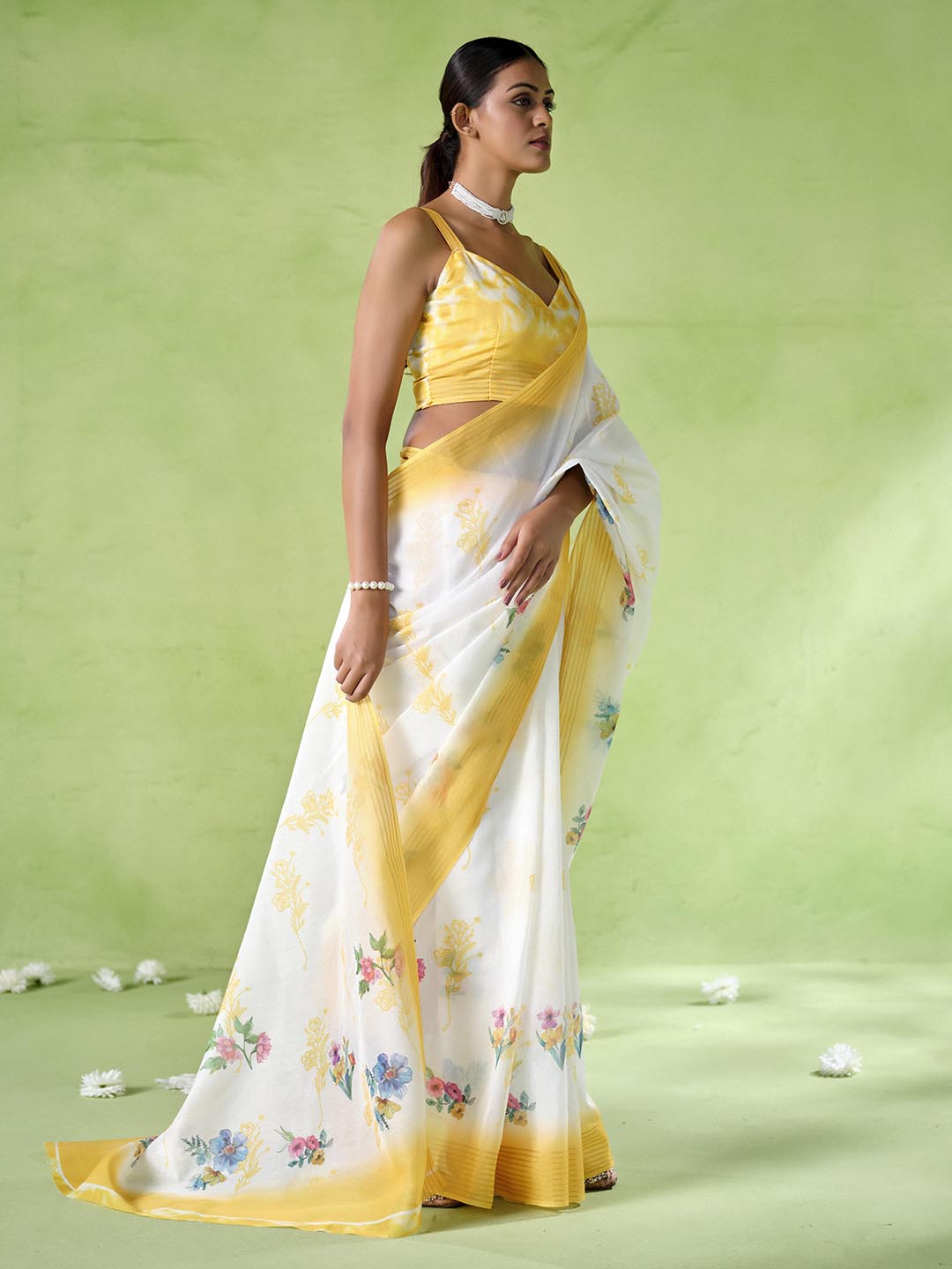 Yellow Color Silk Blend Girlie Designer Printed Saree For Rich Sophisticated Looks