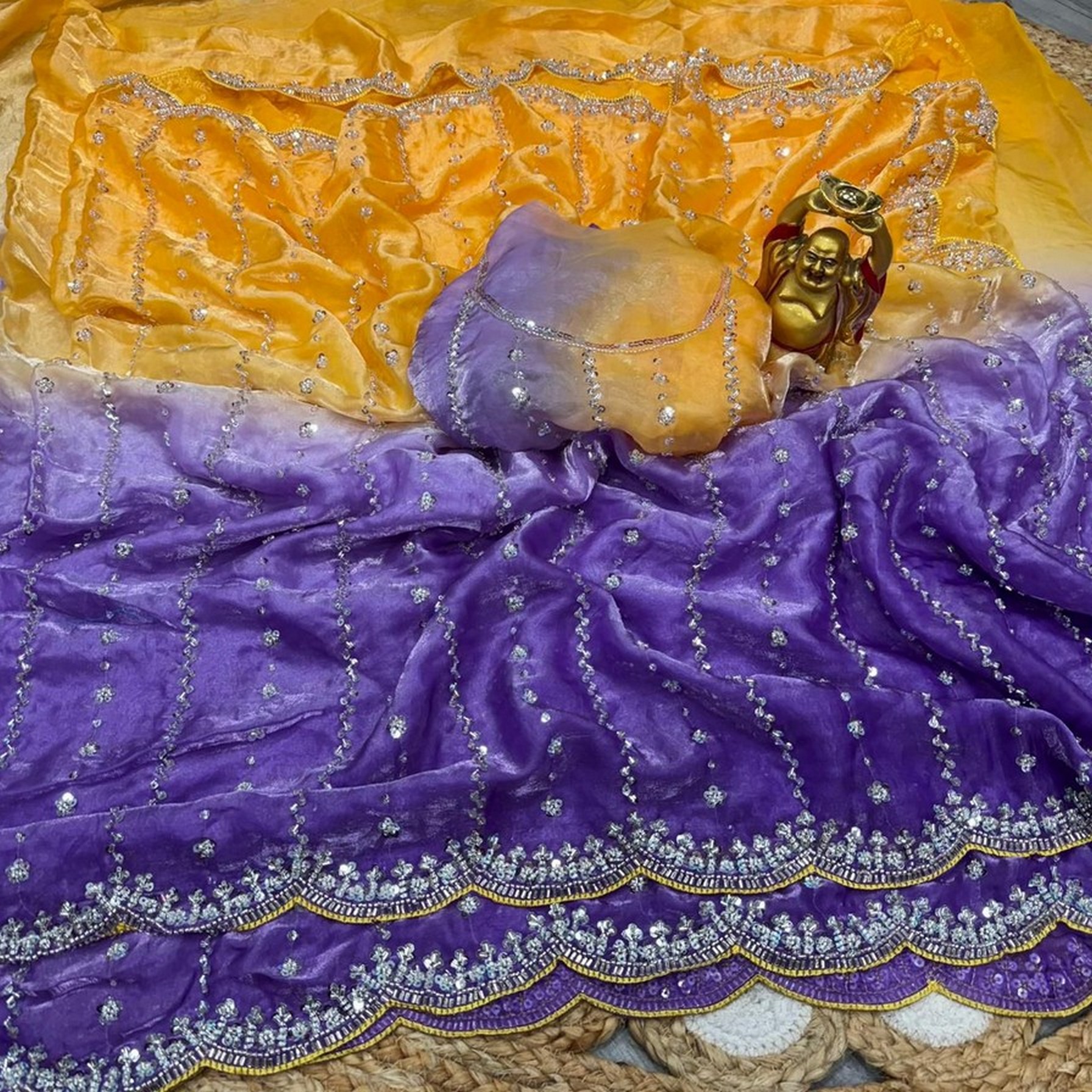 Yellow Color Trendy Fendy Satin Fabric Pedding With Beads Hand Work Saree