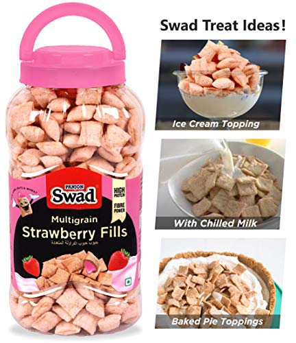 Swad Breakfast Cereal Multigrain Strawberry Fills (Made with Oats Corn Wheat Rice Zero Cholesterol Strawberry Burst Fills) Jar 370 g