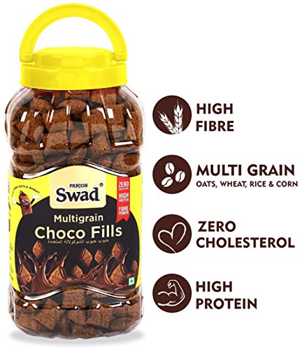 Swad Breakfast Cereal Multigrain Fills (Made with Oats Corn Wheat Rice Zero Cholesterol Chocolate Fills) Jar 370 g