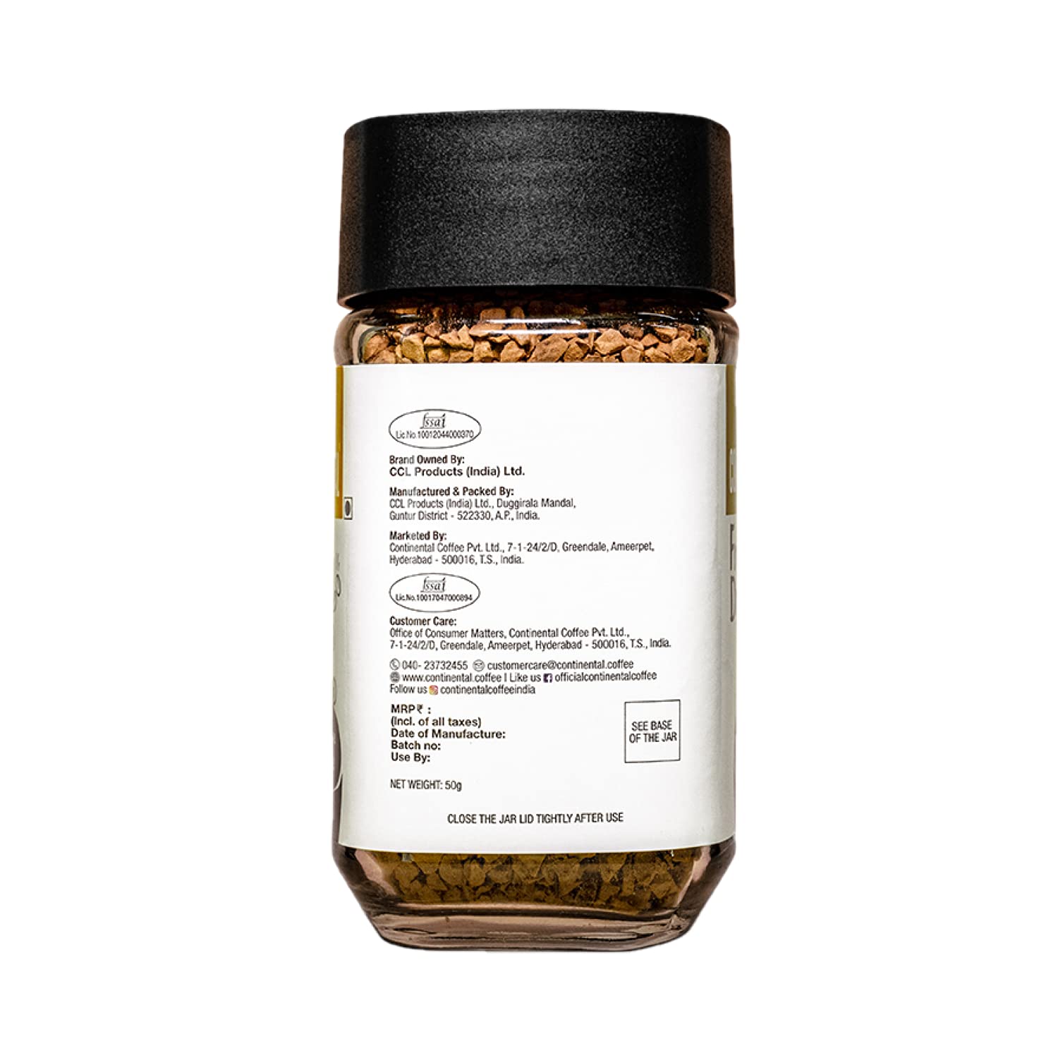 Top of the line Arabica beans from finest Indian plantations come together to give you a perfect start. State-of-the-art freeze-drying technology ensures the elimination of all the water content yet carefully preserving all the essential components for a rich aroma and balanced taste. Best had Black.
