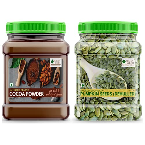 Bliss of Earth Naturally Organic Cocoa Powder is the perfect companion to any health concious kitchen. From holiday desserts and everyday baking to a steaming cup of cocoa on those chilli mornigs our cocoa powder offers a guil-free way to satisfy your sweet tooth without the high amount of sugar fat and preservatives which are commonly available in other mixes. In addition to its rich and indulgent flavor it is non-alkalinized and also has naturally occuring cocoa flavonols (polyphenols). Bliss of Earth Naturally Organic Pumpkin Seeds are dehulled and are one of the healthiest superfood. They are loaded with nutrients that can provide a substantial amount of healthy fats magnesium and zinc. Incorporating these seeds in your diet improves heart health & prostate health.