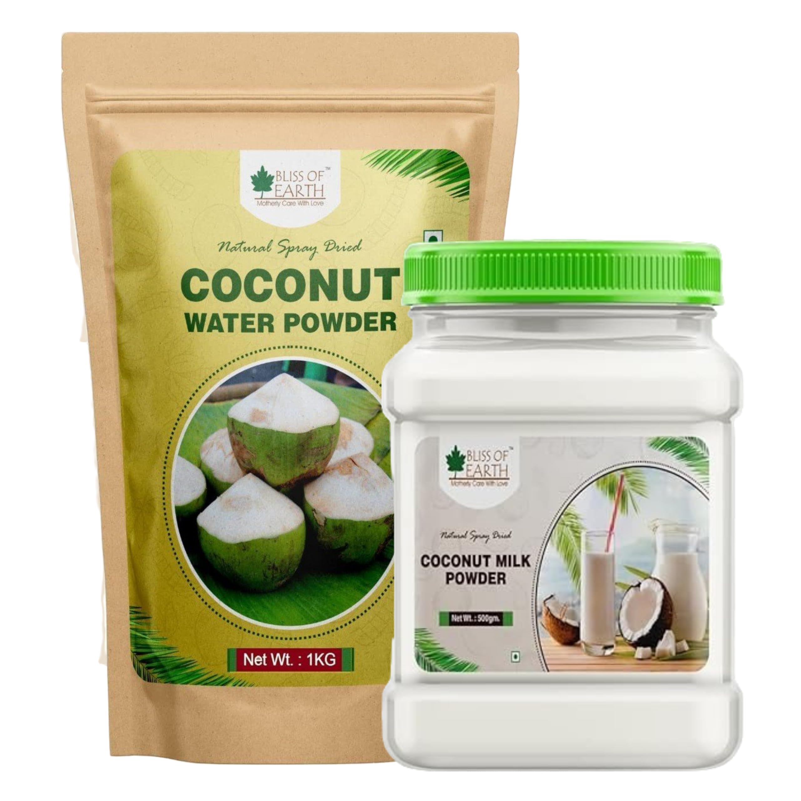 Bliss of Earth Coconut Water Powder 1KG + Coconut Milk Powder 500gm Natural Spray Dried No Added Sugar Great for BeveragesTea Combo