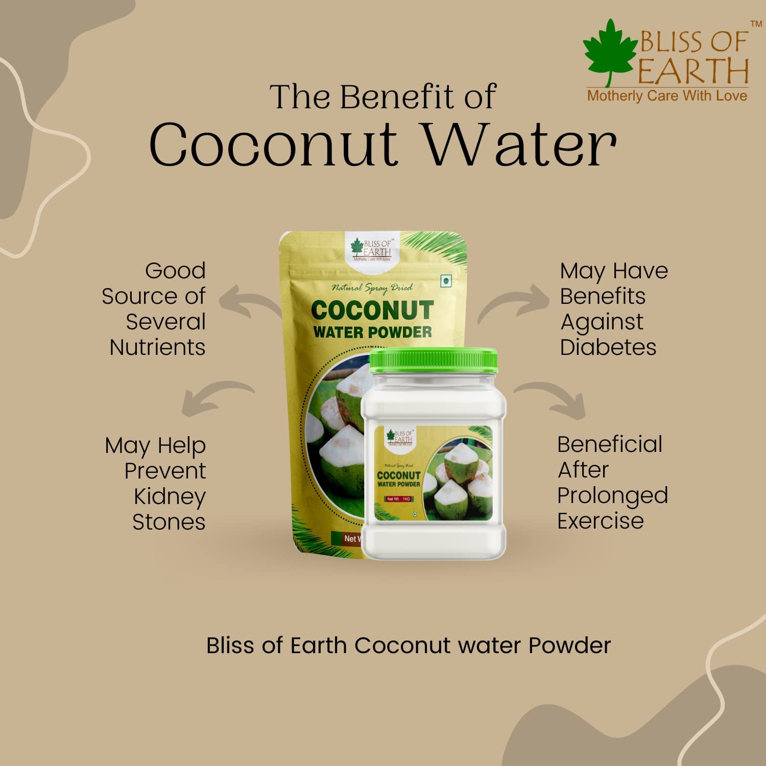 Bliss of Earth Coconut Water Powder is made from fresh tender coconut water by spray drying method. Coconut water powder is a rich source fo potassium magnesium phosphorus and sodium it has a light and sweet flavour and is an excellent source of nutrients and energy