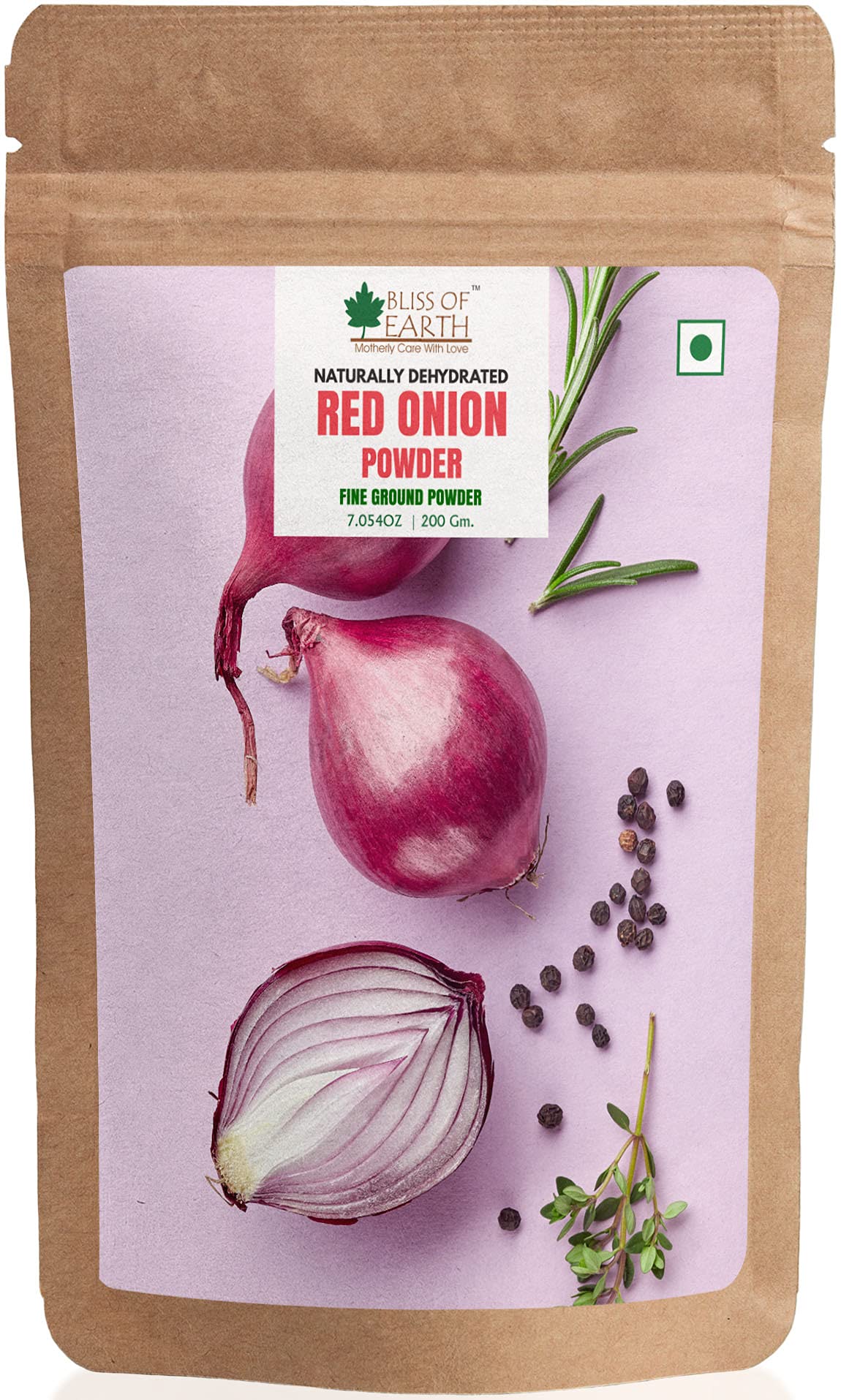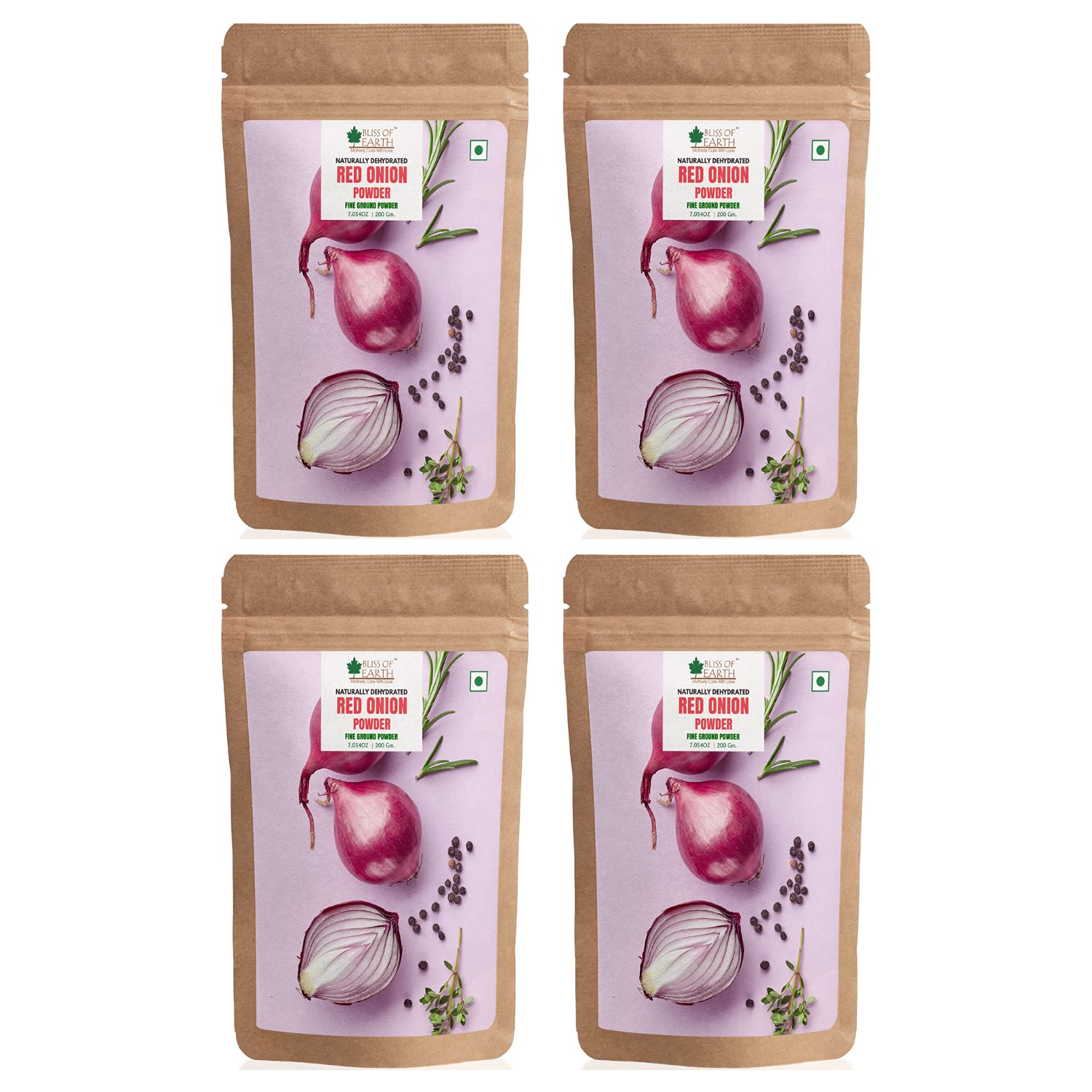 Bliss Of Earth Natural Red Onion Powder Dehydrated Good For Cooking & Hair Growth Pack Of 4x200gm