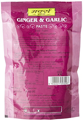 This is the best ginger garlic paste available in India. I have used many other brands and most smell like pickles and are very artificial. This brand makes it similar to hand ground paste. No additives or preservatives.