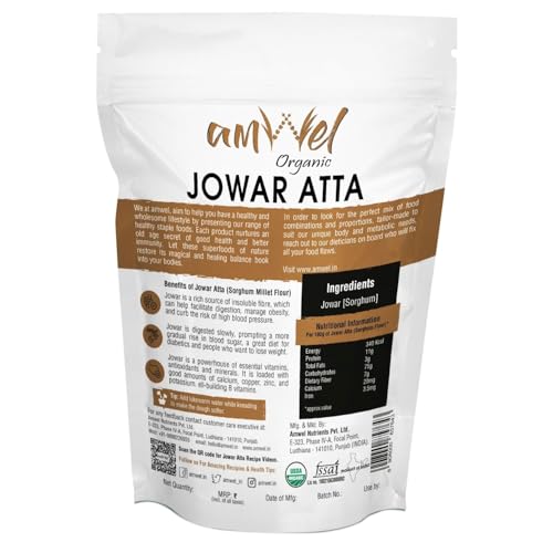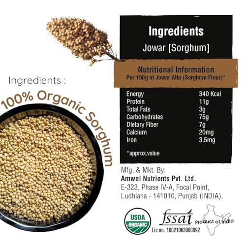 Amwel Organic Jowar Atta | Sorghum Millet Flour 450g | Jawar ka aata | High Protein (Vaccum Packed)