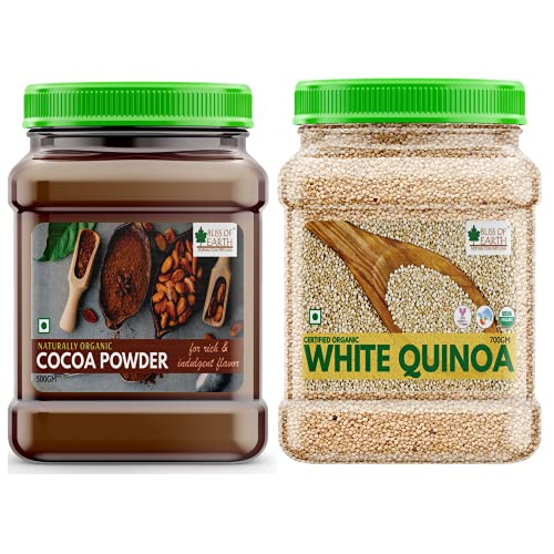 Bliss of Earth Naturally Organic Cocoa Powder is the perfect companion to any health concious kitchen. From holiday desserts and everyday baking to a steaming cup of cocoa on those chilli mornigs our cocoa powder offers a guil-free way to satisfy your sweet tooth without the high amount of sugar fat and preservatives which are commonly available in other mixes. In addition to its rich and indulgent flavor it is non-alkalinized and also has naturally occuring cocoa flavonols (polyphenols). Bliss of Earth Certified Organic White Quinoa is one of the most popular healthfood. Its high in protein fiber magnesium B vitamins iron potassium calcium phosphorus vitamin E and various beneficial antioxidants. Its also one of the few plant foods that contain sufficient amount of all nine essential amino acids.