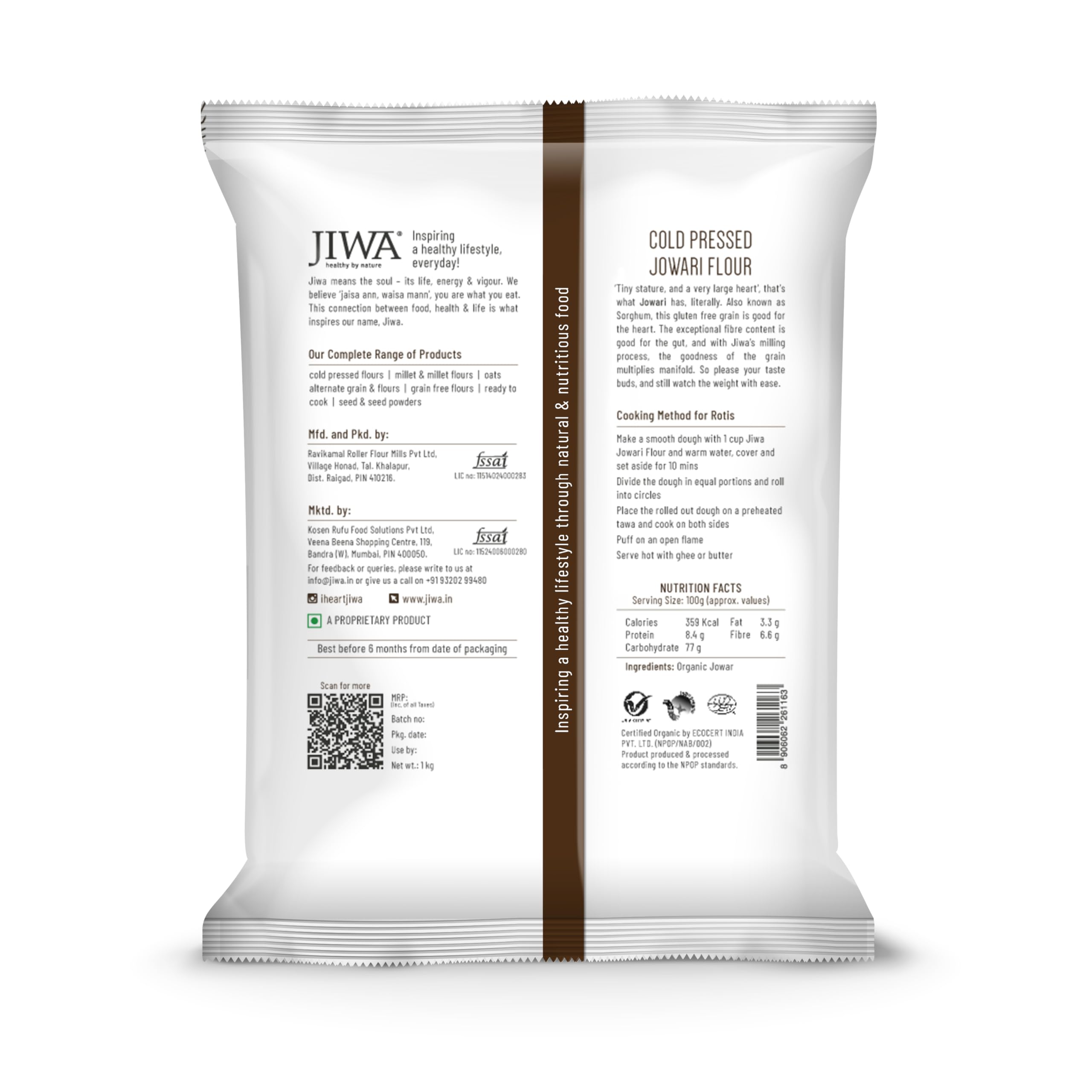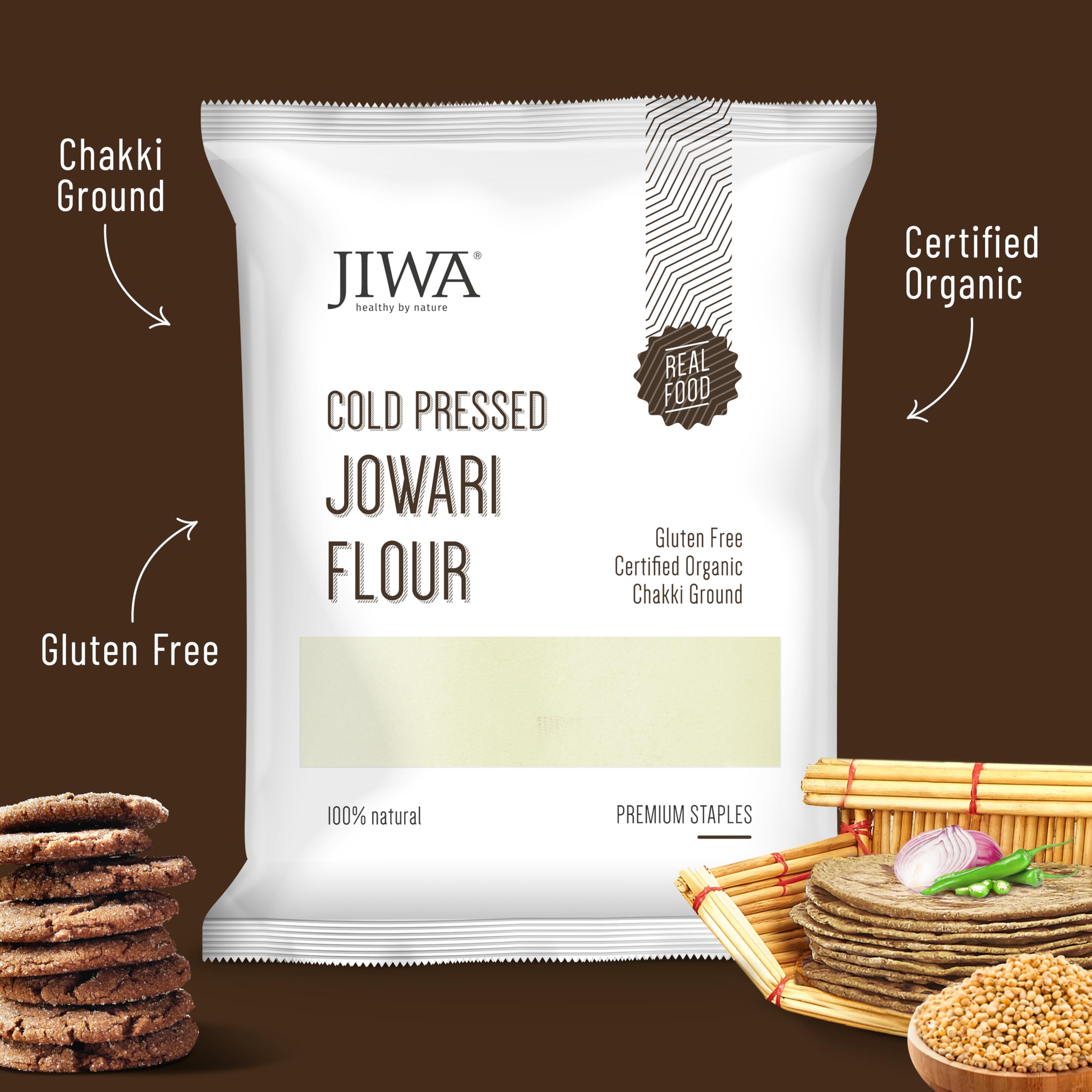 • Balanced Nutrition: Jiwa's organic Jowar atta is a gluten free flour that has a low glycemic index high level of fiber and nutrients and is good for weight loss.