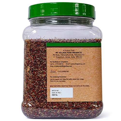 My Village Sprouted Wild Ragi is a 100% Natural and Organic food product. This type of Ragi is grown in the wild and collected by tribal people of the western ghats of Kerala. So the nutrient values will be higher than normally grown ragi. Contains washed and sprouted Ragi - nothing else. Ragi is finger millet which is high in protein and minerals in comparison to all other cereals and millets. Also a source of protein it is a perfect food for babies vegetarians Bodybuilders the Aged etc. Finger millets contain important amino acids—isoleucine leucine methionine and phenylalanine which are not present in other starchy meals. It has the highest amount of calcium and potassium. Ragi is a great source of iron making it beneficial for individuals with low hemoglobin levels. It is good for the stomach and for good digestion. We sorted and washed quality ragi grains. Allow wet ragi for 2-3 days. So the sprouted grains spread out in the sunlight for 5 to 8 hours to dry. Millets also contain B vitamins especially niacin B6 and folic acid. Some of the health benefits of ragi are attributed to its polyphenol and dietary fiber contents. Ragi possesses anti-diabetic and antioxidant and antimicrobial properties; it protects against tumors and atherosclerosis. Low in fat and gluten-free ragi is easy to digest. It is therefore given as the first food to babies in the form of ragi porridge.