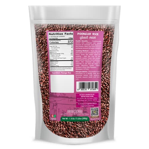 Nativefoodstore Poongar Rice-500gms Traditional Red Rice. Hand Pounded Red Rice. Diabetic Friendly. Rich in Vitamins Minerals. Gluten Free. Weight Loss