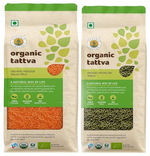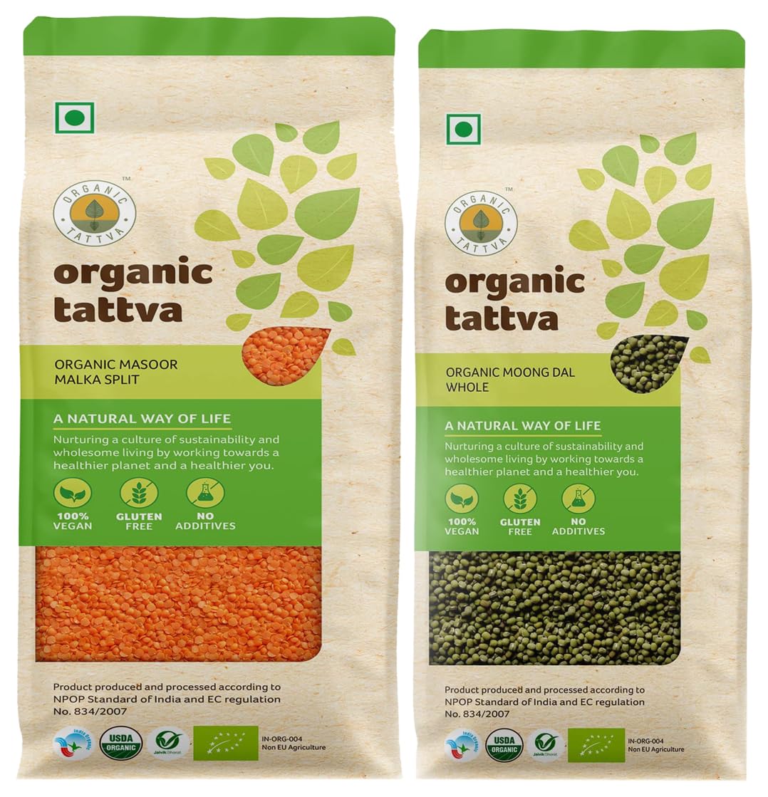 Organic Tattva Masoor Malka Split 500gOur Mission: Our brand mission is to help people live a healthier wholesome life by providing them with a variety of 100 percent certified authentic organic foods. We value honesty integrity and continual self-improvement. We are committed to a sustainable environment zero-additive foods and complete customer-satisfaction. Brand philosophy: The brand organic tattva is based on the principles of health ecology fairness and care. At organic tattva the team works with accredited organic farmers who do not use fertilizers pesticides and genetically modified seeds so that their consumers can enjoy the benefits of nature and relish nutritious healthy pure and chemical-free food an important factor contributing to overall wellbeing.Organic Tattva Moong Dal Whole 500gOur Mission: Our brand mission is to help people live a healthier wholesome life by providing them with a variety of 100 percent certified authentic organic foods. We value honesty integrity and continual self-improvement. We are committed to a sustainable environment zero-additive foods and complete customer-satisfaction. Brand philosophy: The brand organic tattva is based on the principles of health ecology fairness and care. At organic tattva the team works with accredited organic farmers who do not use fertilizers pesticides and genetically modified seeds so that their consumers can enjoy the benefits of nature and relish nutritious healthy pure and chemical-free food an important factor contributing to overall wellbeing.