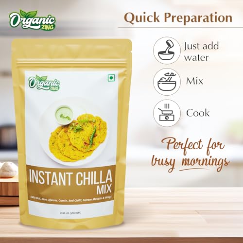 Organic Zing Quick and Delicious Instant Chilla Mix | Made with Mixed Dal & Rice | 200g