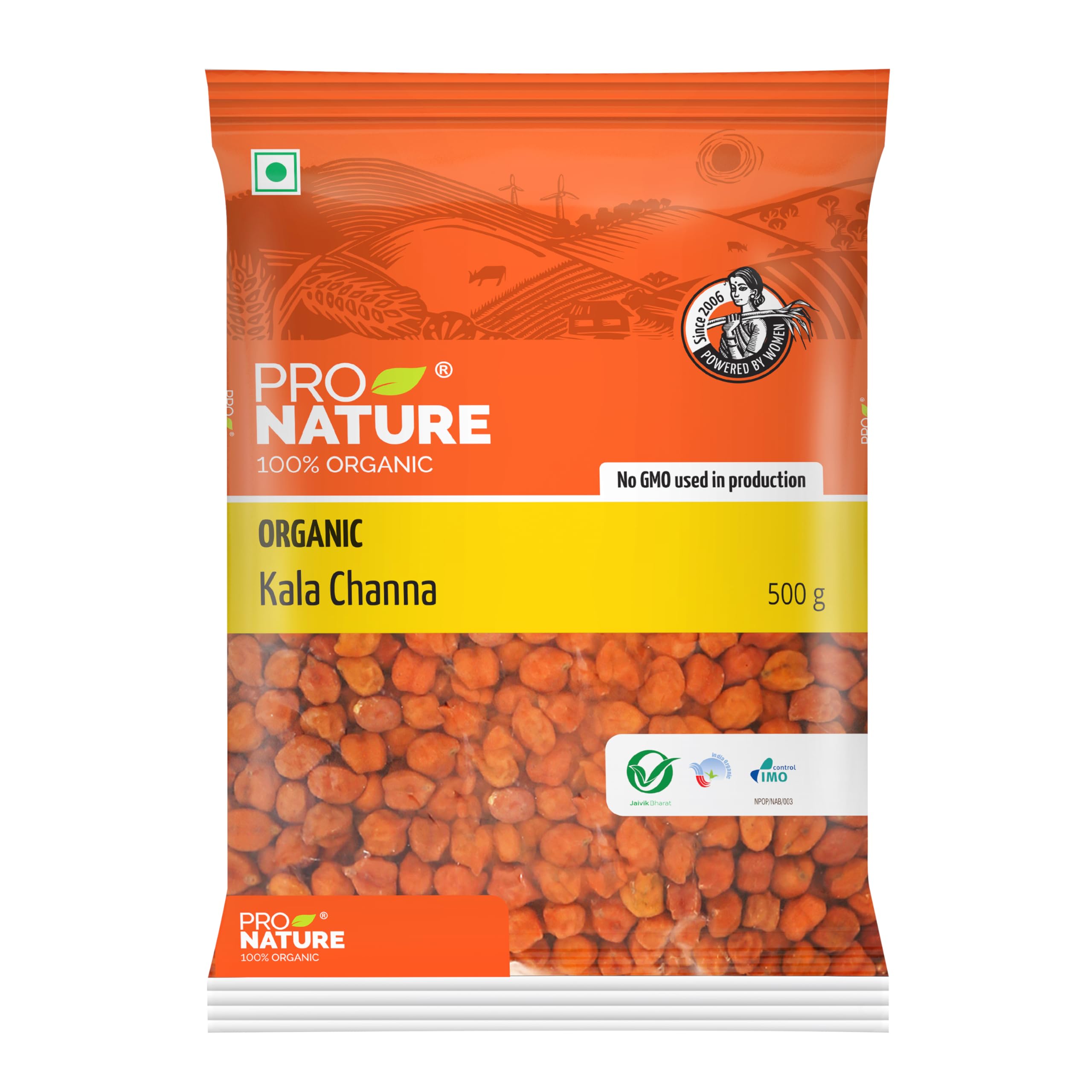 Buy Pro Nature Organic Kala Channa they are best known for quality and pure product. Organic food ensures you pesticides free and genetically modified ingredients in food. Discover the real taste through Pro Nature Organic Kala Channa. Kala Channa or black chick peas are pure vegetarian stuffs and thus known for being staple food in several countries. Chana is a source of nutrients rich in proteins dietary fiber and complex carbohydrates with a mass of vitamins and minerals. It is low in fat with zero cholesterol and because it is a plant food it contains potentially health-beneficial phytochemicals. There are various ways to take the flavour of Organic Kala Channa by preparing them in certain gravies and curries. Pro Nature Organic Kala Channas are even good for making sprout which again proves to be the advantageous for health issues.