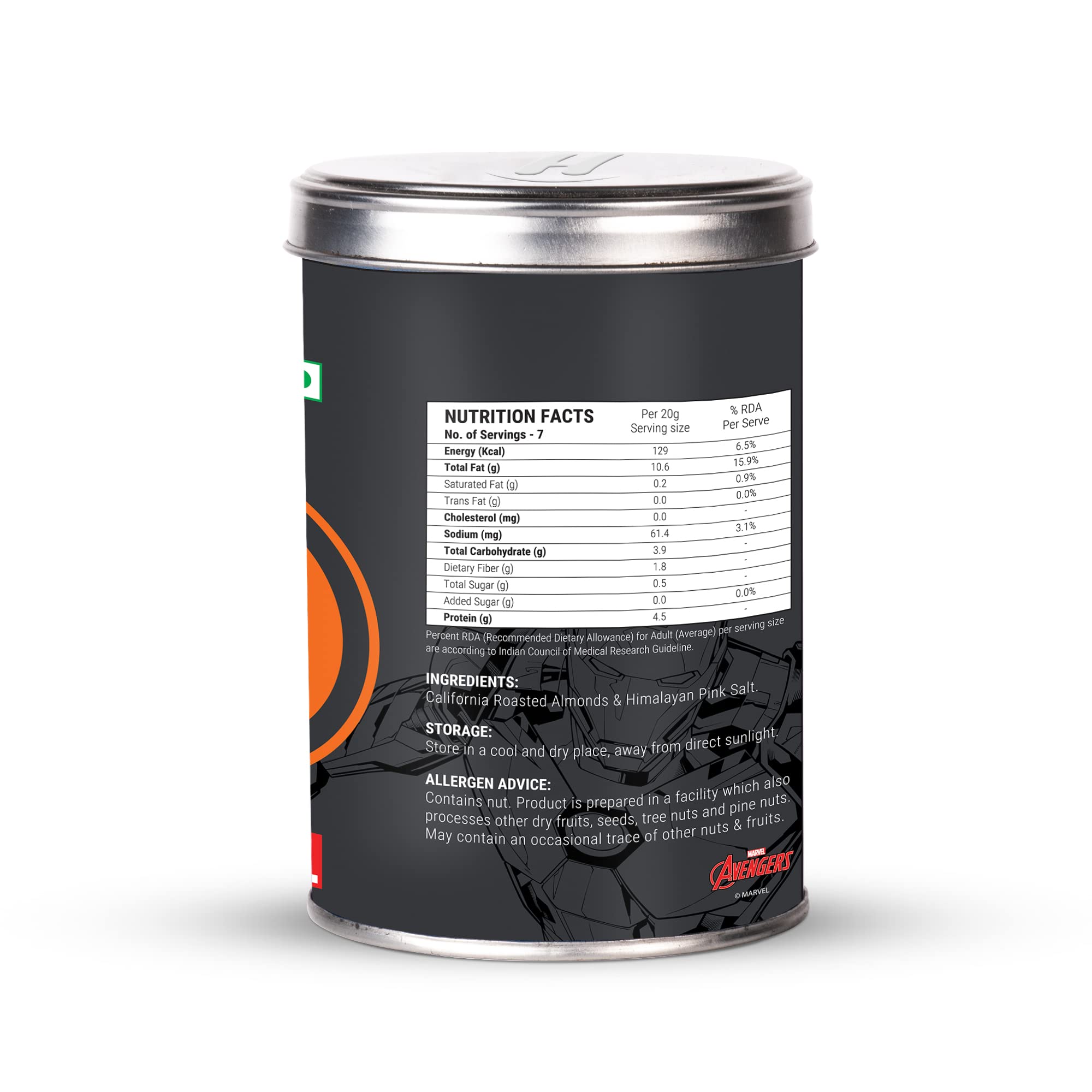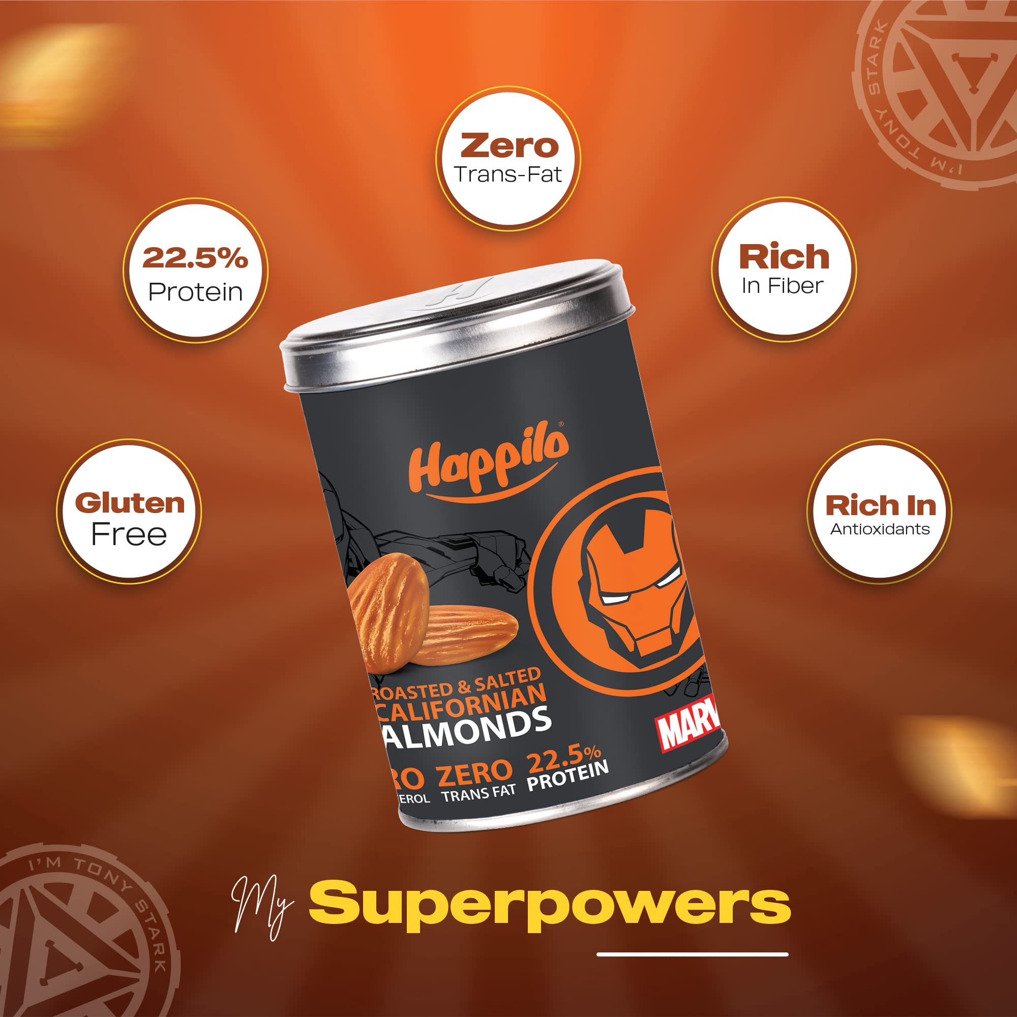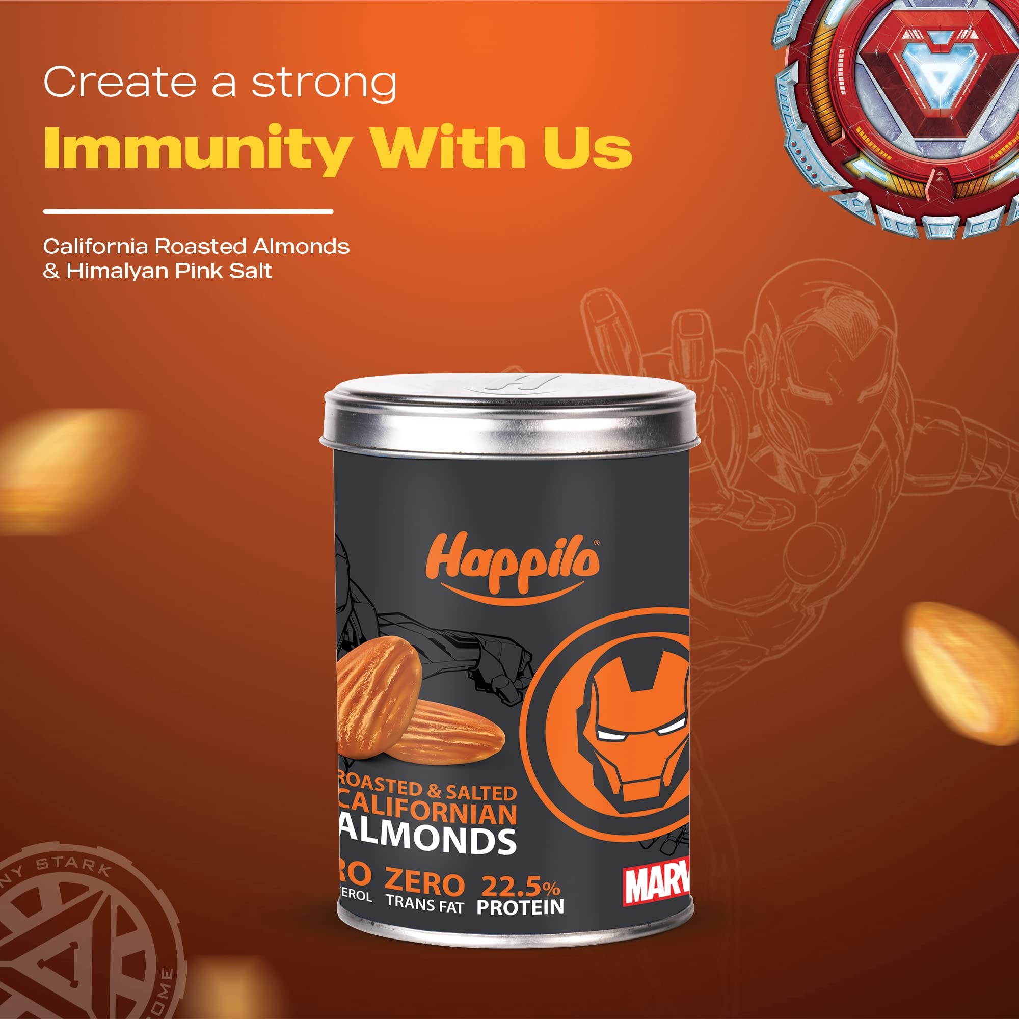 Happilo Iron Man Marvel Edition roasted and salted almonds are one of the most popular savoury snacks. They are nourishing and include a lot of good fats antioxidants vitamins and minerals. These roasted almonds have crispy crunchy and delicious nutty flavour.