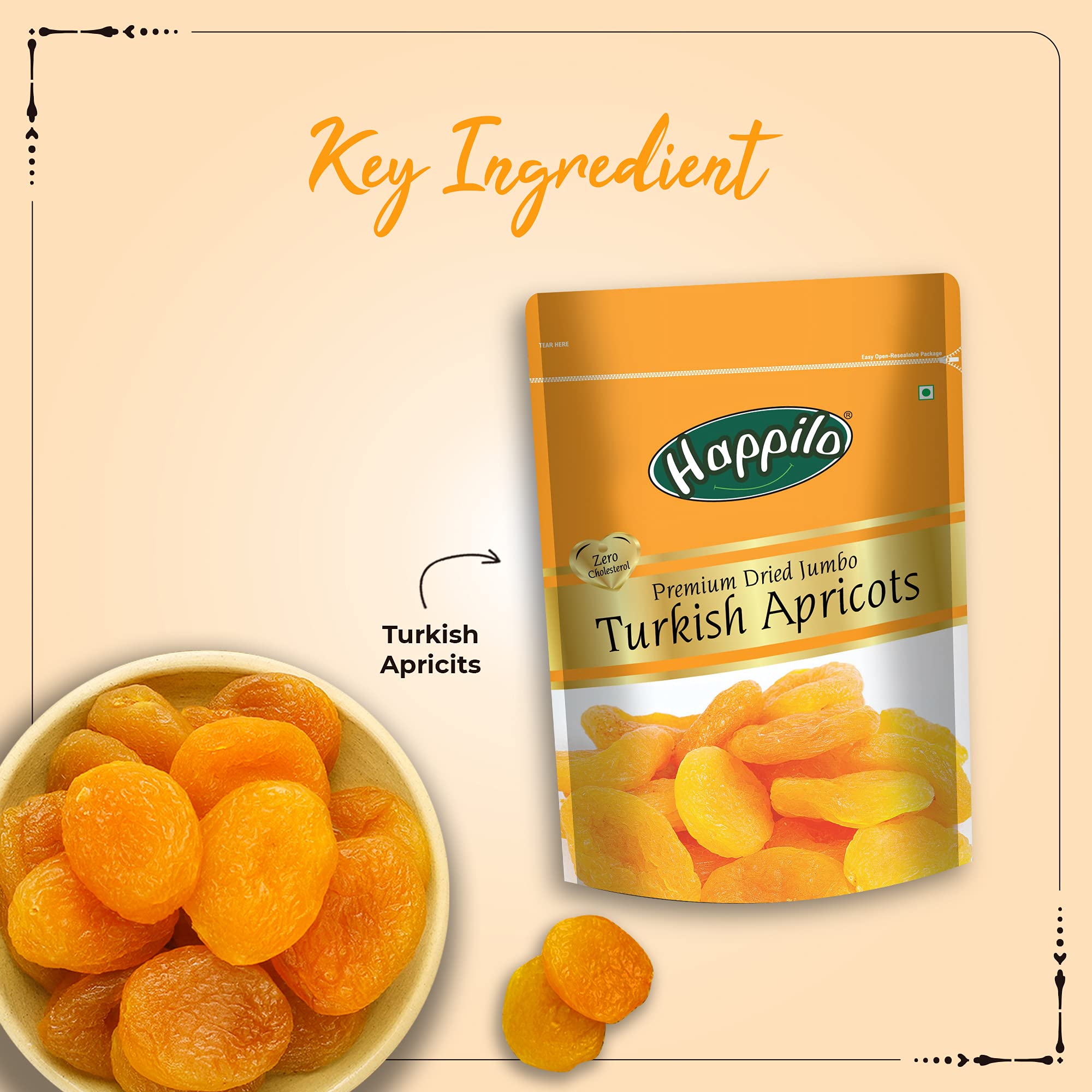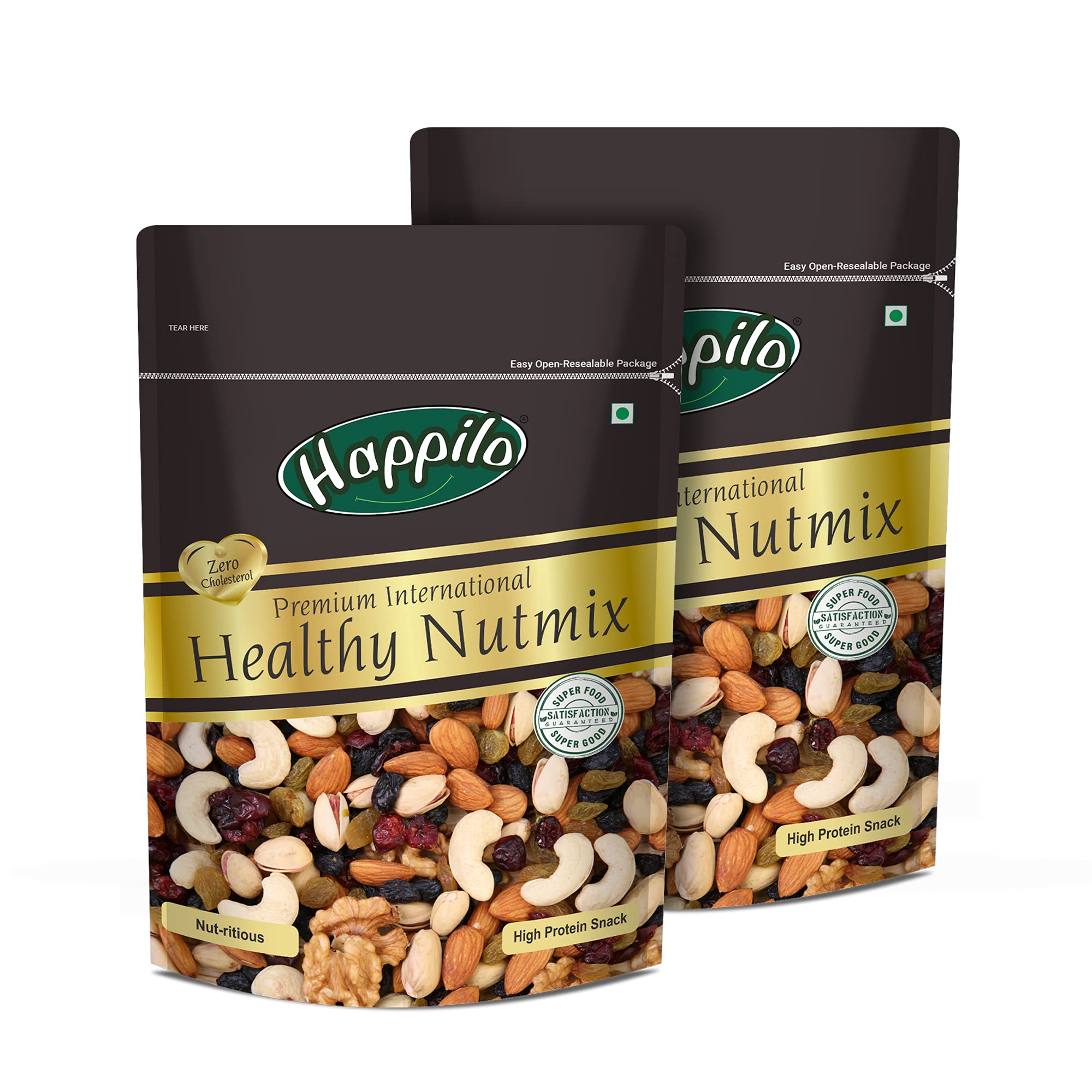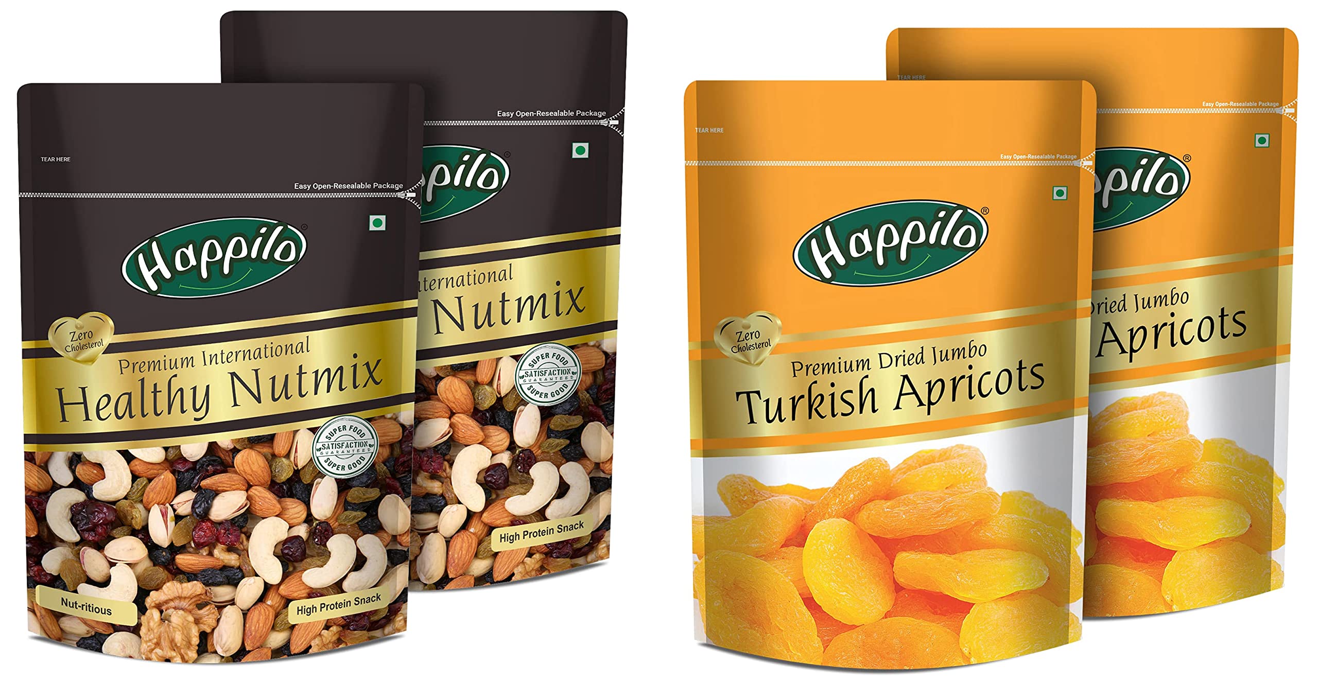 Happilo Premium International Healthy Nutmix 200g (Pack of 2) Dry FruitsHappily has travelled the world to get the finest gourmet dry fruits dried fruits nuts berries and dates 100 percent natural and authentic. Indulge into the gourmet and grocery world of Happily with awesome natural nuts and dry fruits along with the unique dry fruit mixes fusions and flavoured dry fruits healthy seeds and dried berries specially crafted for your taste and health. Happily dry fruit gift boxes and festive dry fruits and nuts gift pack brings health happiness and love to gift to your colleagues friends and family. We bring you the taste and health together in single pack in the finest of packing packed in an art of the state facility certified by all majors like fssai iso. Every Happily pack is a perfect dry fruits gift for every festive occasion.Happilo Premium Jumbo Turkish Apricots 200g (Pack of 2)Happilo has travelled the world to get the finest gourmet dry fruits. They are one of the most nutritious dried fruits in the world they're a yummy healthy snack. Great for Snacking adding to Cereal Cooking and Baking. High Antioxidants Dietary Fiber No Gluten Non GMO Zero Trans Fat & Zero Cholesterol. Daily need products for a healthy and energetic life. Happilo Zip Lock Pouch with airtight seal to ensure the product is protected and fresh. Quality assured - Happilo products are rigorously tested against the industry's best quality standards.