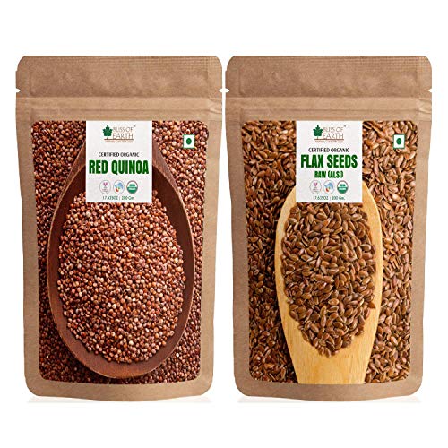 Bliss of Earth Certified Organic Red Quinoa is one of the most popular health food. Its high in protein fiber magnesium B vitamins iron potassium calcium phosphorus vitamin E and various beneficial antioxidants. Its also one of the few plant foods that contain sufficient amount of all nine essential amino acids. Bliss of Earth Certified Organic Flax Seeds popularly known as Alsi is one of the popular health food due to its high content of hearth healthy OMEGA-3 fats fiber and other plant compounds. It offers many health benefits such as improved digestion and reduced risk of heart disease.