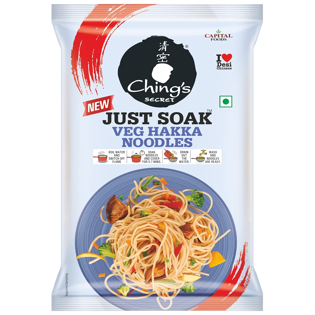 Our latest innovation will make cooking Hakka Noodles at home much more easy & hassle free. Regular Hakka Noodles often become soggy & mushy when cooked at home. But with New Ching's Just Soak Veg. Hakka Noodles you can get al-dente non-sticky noodles every time. This is because Ching's Just Soak Hakka Noodles are different! These high-quality noodles are semi-cooked and need to be Just Soaked & drained to be ready. (See cooking instructions). Just add in stir-fried veggies and Ching's Hakka Noodles Masala your ultimate Hakka meal is ready! For a spicier Desi Chinese kick add Ching's Schezwan Chutney.