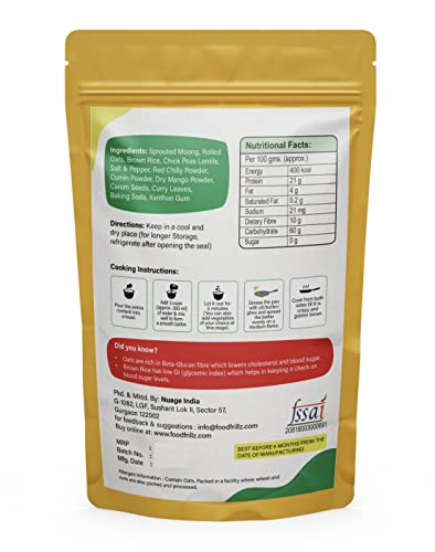 Foodfrillz Sprouted Moong-Oats Healthy Chilla / Dosa/ Salted Pancake Breakfast Mix 200 g + Free Coconut Chutney Powder Trial Pack (25 g)