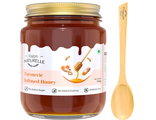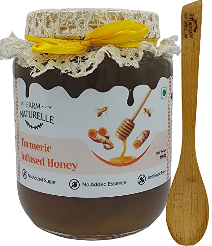 Farm Naturelle - Pure Turmeric Infused in Forest Honey | Raw Unprocessed Delicious and Ant-oxidant Honey to Fight inflammation| 100% Pure & Natural Ingredients Honey - 1kg+150gm Extra and a Wooden Spoon
