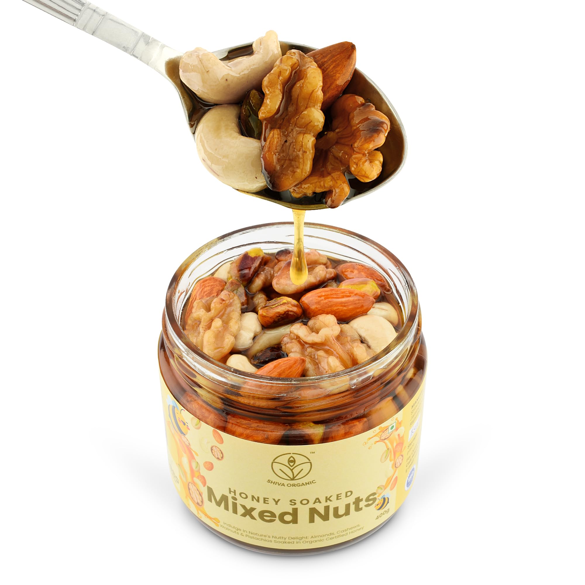 Shiva Organic Honey Soaked Nuts - 400g | Crunchy Rich in Protein Magnesium Phosphorus and Dietary Fibre I Energy Booster