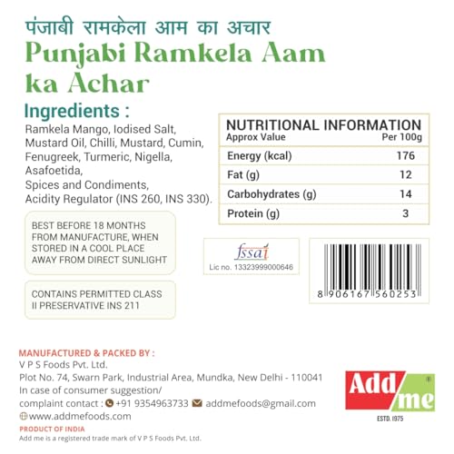 Ramkela Mango, Iodised Salt, Mustard Oil, Chilli, Mustard, Cumin, Fenugreek, Turmeric, Nigella, Asafoetida, Spices & Condiments