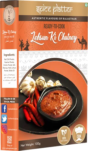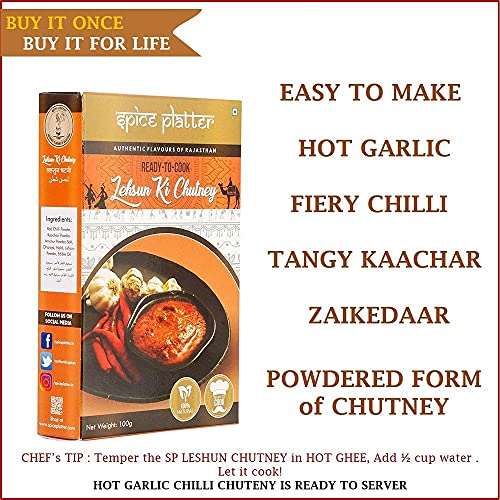 Spice Platter Lehsun Chutney is a handcrafted blend made with 100% natural and high-quality spices which are freshly roasted for authentic and aromatic flavors with no added preservatives. Lehsun chutney is spicy hot garlic chutney. It is ideal to be accompanied chaats like vada pav chillis bhel dosa etc. Pungent chutney of garlic spiced up with red chili powder and pepped up with kaachari powder. Add new spicy and tangy taste to your food as you serve it with this delicious and aromatic chutney. It can also be used as Garlic Kachari Meat Tenderizer.