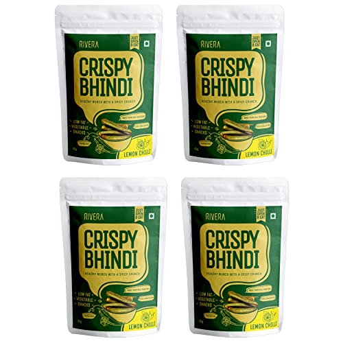 Rivera Crispy Bhindi (Lemon Chili) Okra Chips Vegetable Snacks Vacuum Cooked So No Need To Cook Ready To Eat 50G Each (Pack of 4)