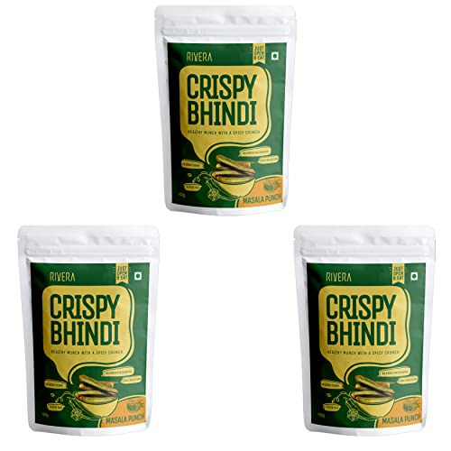Rivera Crispy Bhindi (Masala)Okra Chips Vegetable Snacks Vacuum Cooked So No Need To Cook Ready To Eat 50G Each (Pack of 3)