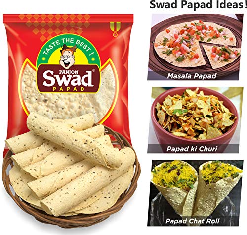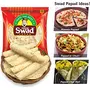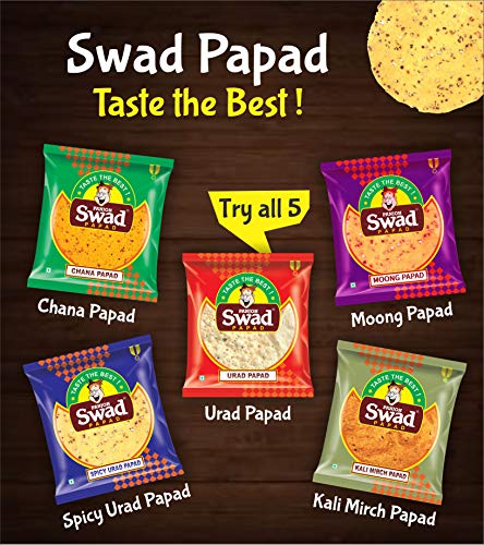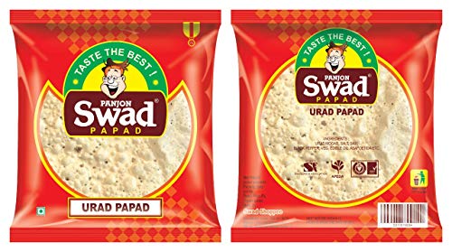 Swad Urad Dal Special Papad (Medium Spicy Authentic Punjabi Taste 100% Cripsy & Tasty | Fried or Roasted | with Pickle or Chutney) Urad Papad Snack 400g. Hygienically made with Quality Kitchen ingredients: Dal gram flour Salt Spices Asafoetida Hing Mirch Edible Oil etc. Authentic Traditional Taste surated by Home Chefs - Mothers. Helps in Digestion & Gut health. Prepares within 1 minutes Masala Papad Roll. 100% Vegetarian. 100% Tasty & Digestive. Quality from Swad - Panjon Limited. Best served with chutney pickle Khakra Chai Tea as a Crispy & Crunchy Snack. Swad Papads can be cooked in many ways! Ideal Snack for House Party Weddings Birthday Menu Anniversary Gift Ready to Eat. Also try all 5 flavours of Swad Papads - Swad Urad Papad Spicy Urad Papad Chana Papad Moong Papad & Kali Mirch Papad.