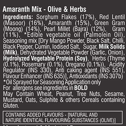 • Amaranth Mix Olive & Herbs Mixture Namkeen is unique & flavorful savory/ namkeen coated with a special blend of spices & loaded with peanuts.
