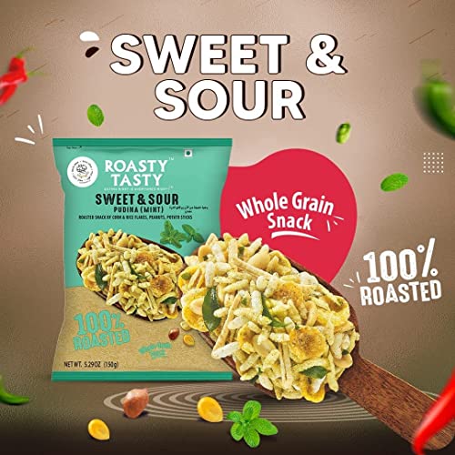 Roasty Tasty Roasted Sweet & Sour Mixture Pudina Whole Grain Indian Snacks Pack 200g
