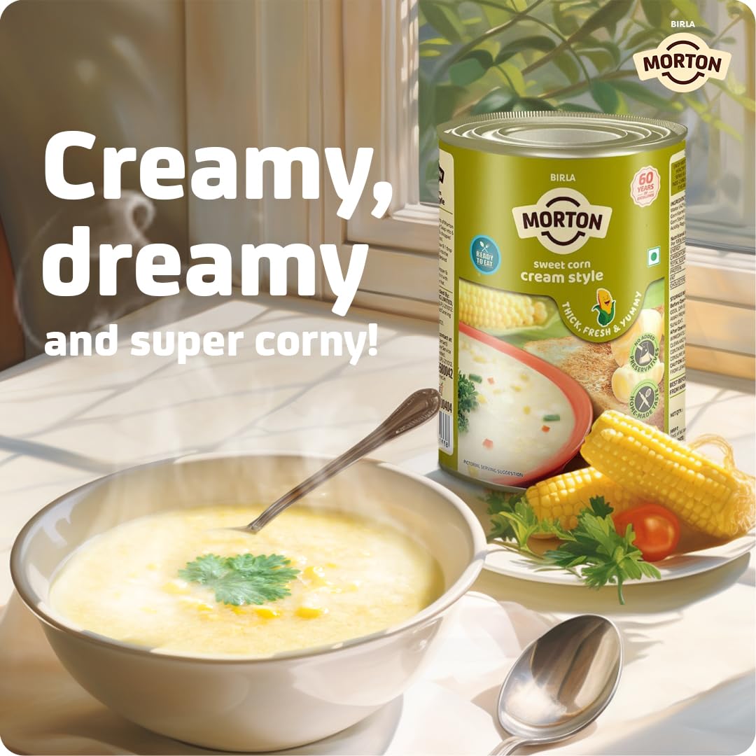 HomeGrocerySnacksHealthy SnacksMorton Sweet Corn With Creamy Style Tin Sweet Corn | Ready to Eat High In Fibre | No Artifical Colours & Preservatives | Fresh & Yummy American Corn sweet corn cream style tin - 450gm (Combo of 3)