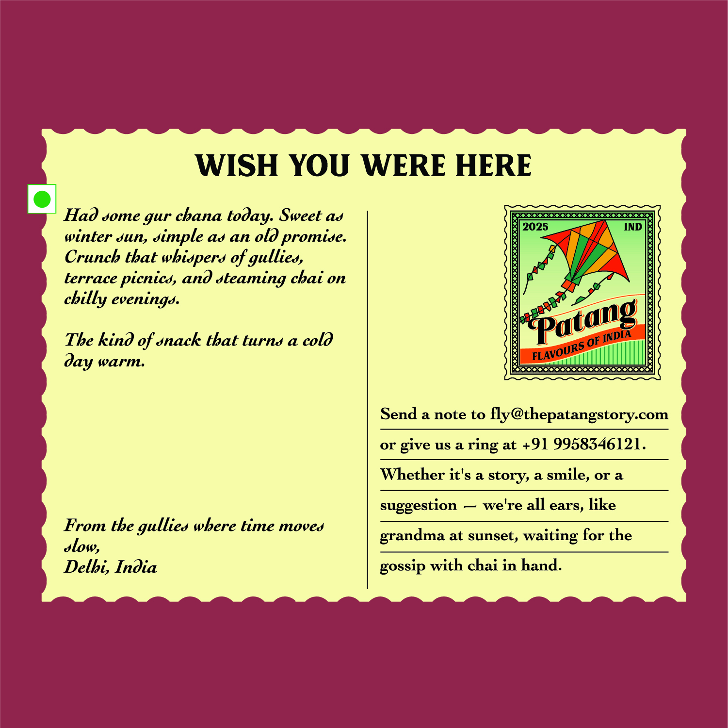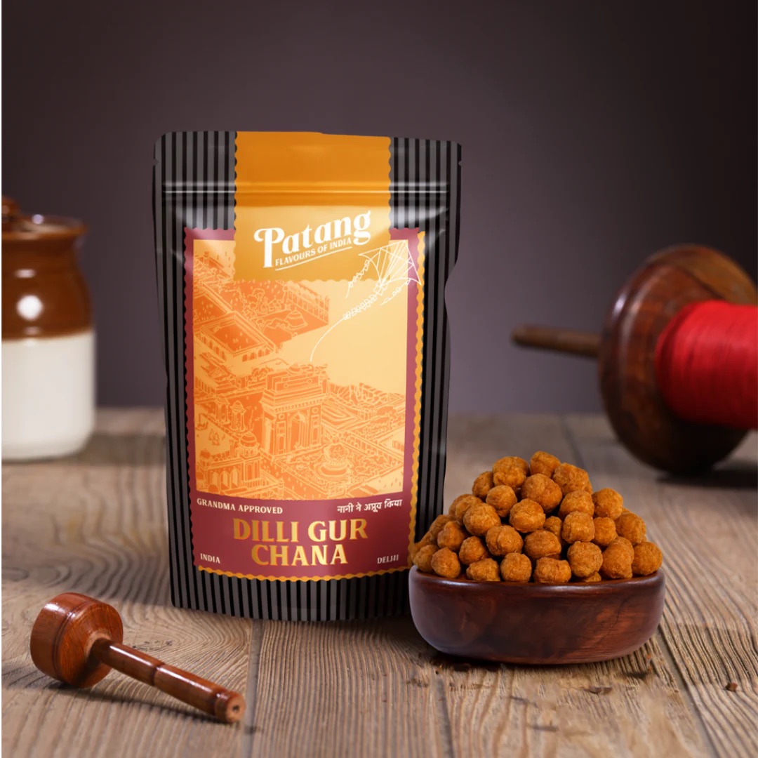 Patang’s Dilli Gur Chana is made with just two ingredients done right. Crisp chana for the bite. Pure gur for the glow. No bad oils, no tricks. Just the taste of old-school Delhi — straightforward, warm, and quietly satisfying.