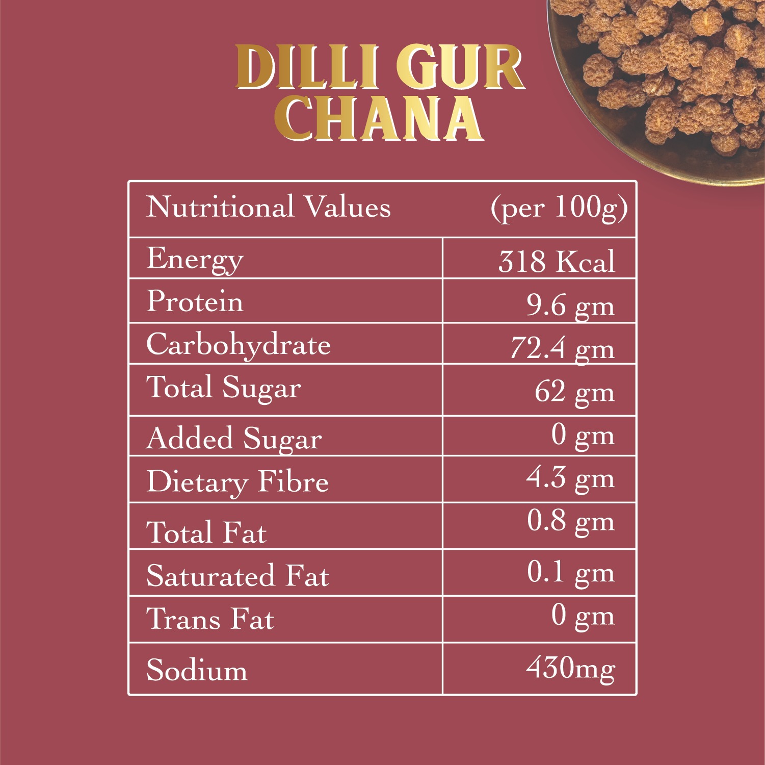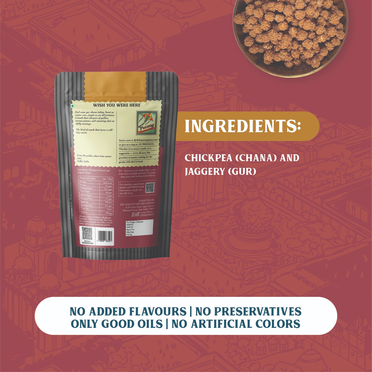 • Classic Delhi treat: Roasted chickpeas coated with pure molten gur (jaggery) for a sweet, earthy, and deeply satisfying snack.