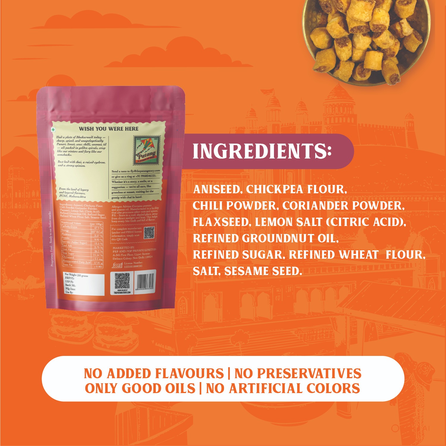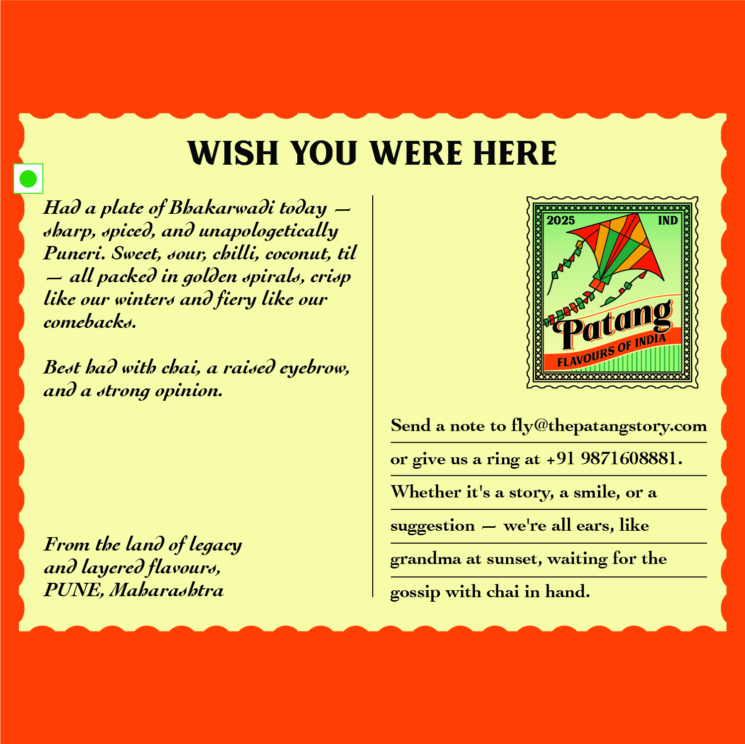 Patang’s Puneri Bhakarwadi keeps it honest. No bad oils. No shortcuts. Just a proper mix of spice, crunch, and old-school balance. It tastes like winter mornings, family trips on the old highway, and the tin your mother hid because you finished it too fast.