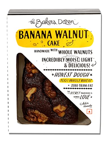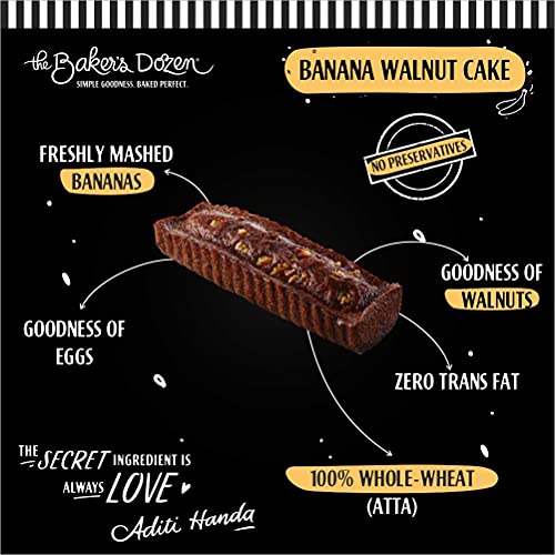The Baker's Dozen 100% Wholewheat Banana Walnut Cake | With Natural Sweetness of Freshly Mashed Bananas | Loaded with Crunchy Walnuts | Fresh Fluffy and Nutritious Cake | No Maida | 150g | Pack of 1