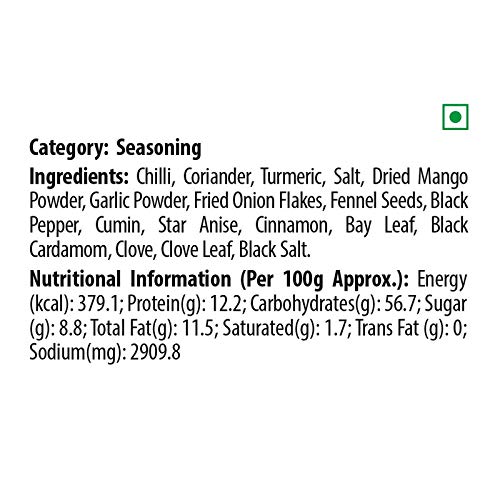 Chilli Coriander Turmeric Salt Dried Mango Powder Garlic Powder Fried Onion Flakes Fennel Seeds Black Pepper Cumin Star Anise Cinnamon Bay Leaf Black Cardamom Clove Clove Leaf Black Salt