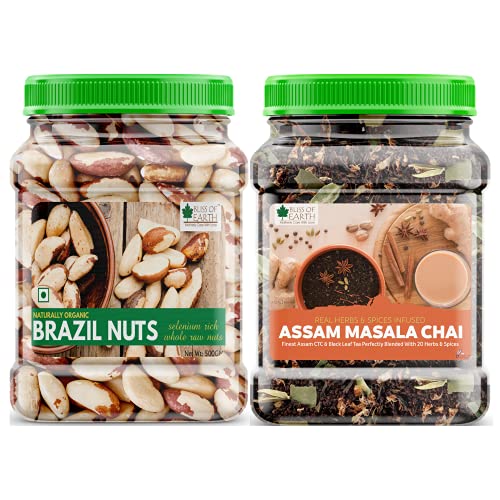 Bliss of Earth Brazil Nuts are nutritional powerhouse providing healthy fats vitamins and minerals. They are particularly high in selenium a mineral with potent antioxidant properties. Hazelnuts can be consumed as a raw snack roasted or added to baked dishes such as cake chocolates & shakes. All in all brazil nuts are an excellent and delicious source of nutrients for a healthy diet. Direction for use: Consume raw roasted or salted. Add to your cake chocolates or shakes. Bliss of Earth Masala CTC Tea (Chai) with Herbs & Spices is a healthy blend of Assam CTC Tea Leaf Assam Black Orthodox Tea and Twenty Herbs and Spices that produce a unique taste to traditional Milk Tea and also reduce the gas and acidity which is common with ordinary CTC tea. Our CTC Tea (Chai) is a Blended Herbal Tea made from finest Tea Leaves produces in Upper Assam region and enriched with Orthodox Black Tea Leaves to produce perfect Taste Aroma and Colour. It is blended by Tea Experts with Twenty Herbs and Spices that add a unique taste and herbal benefits making your everyday tea drinking more healthy.